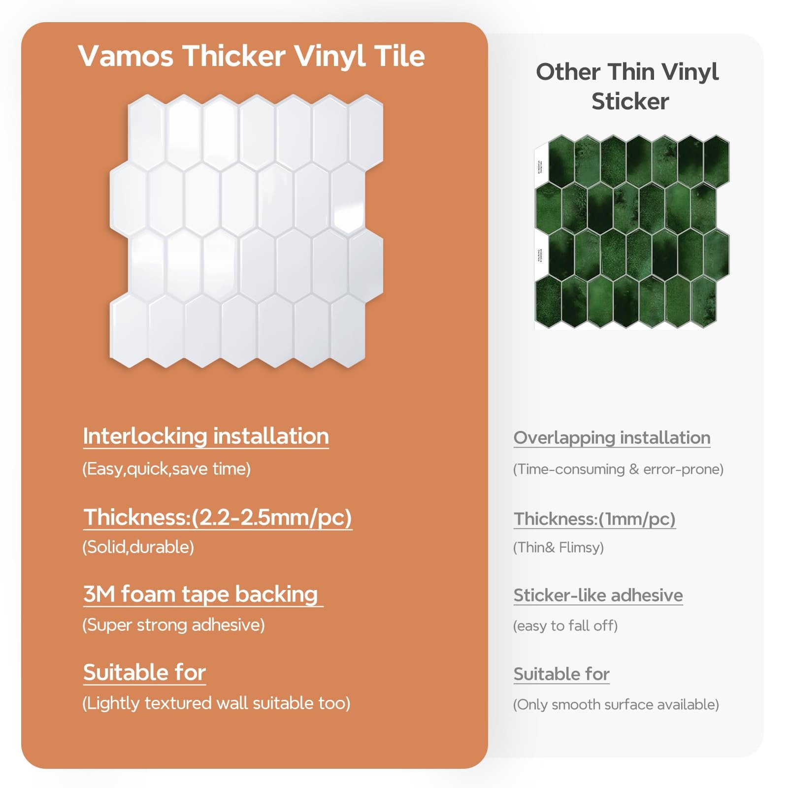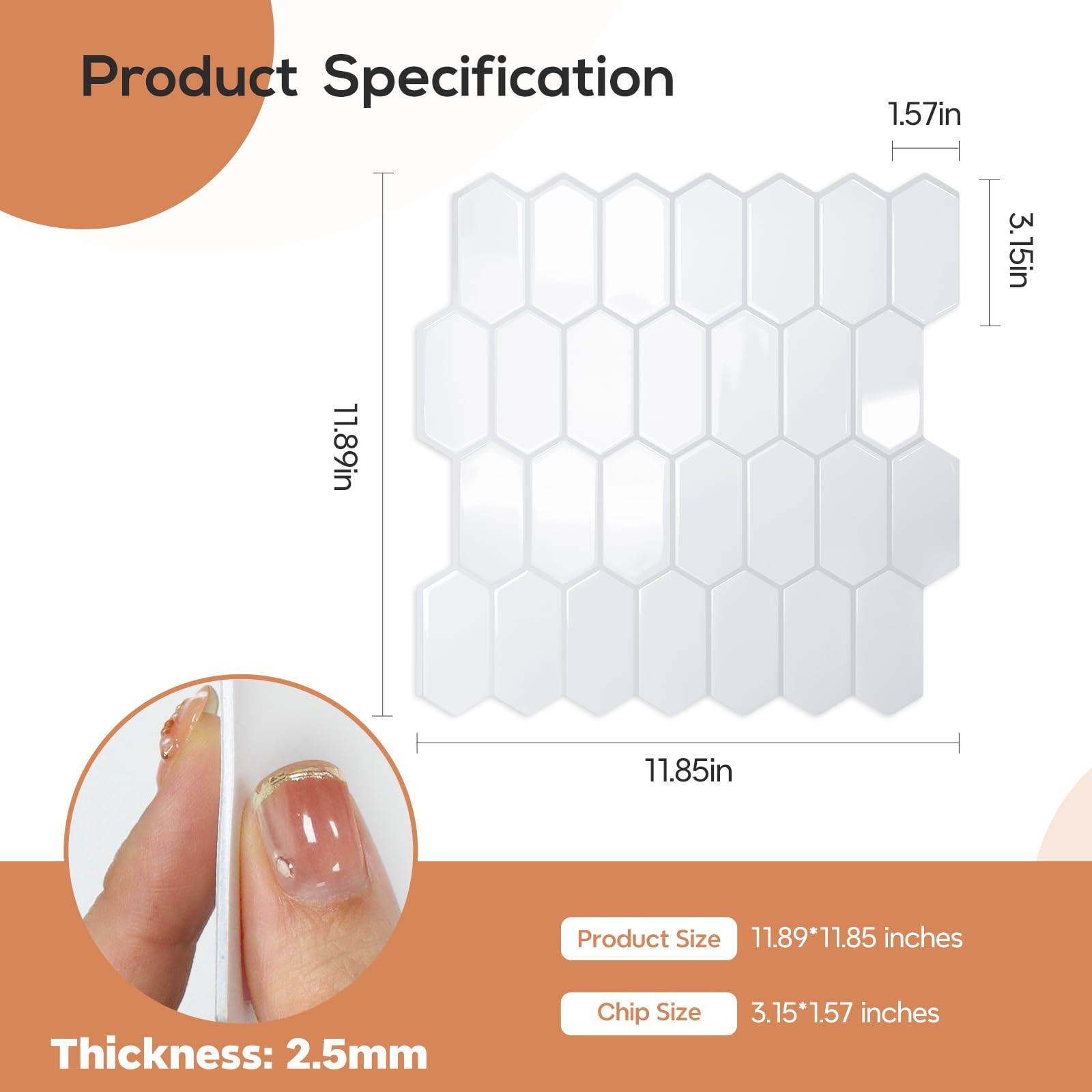 Upgraded Thicker Design Backsplash Tile Peel and Stick, 10-Grayish White with...