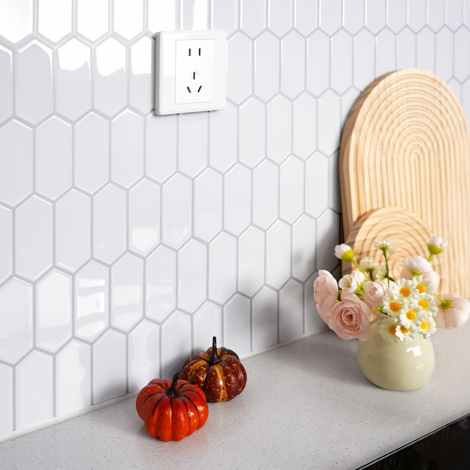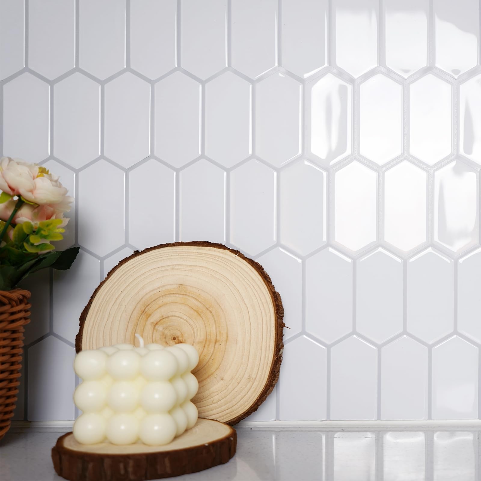 как выглядит Upgraded Thicker Design Backsplash Tile Peel and Stick, 10-Grayish White with... фото