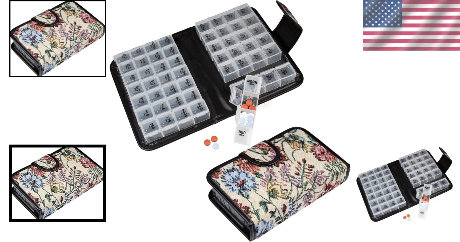 как выглядит Floral Pill Organizer - Portable 14-Day Holder with Secure Snap Closure фото