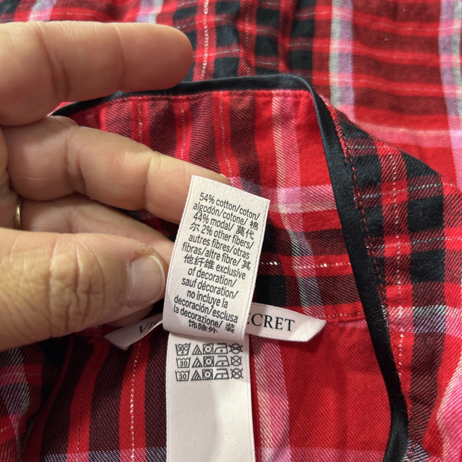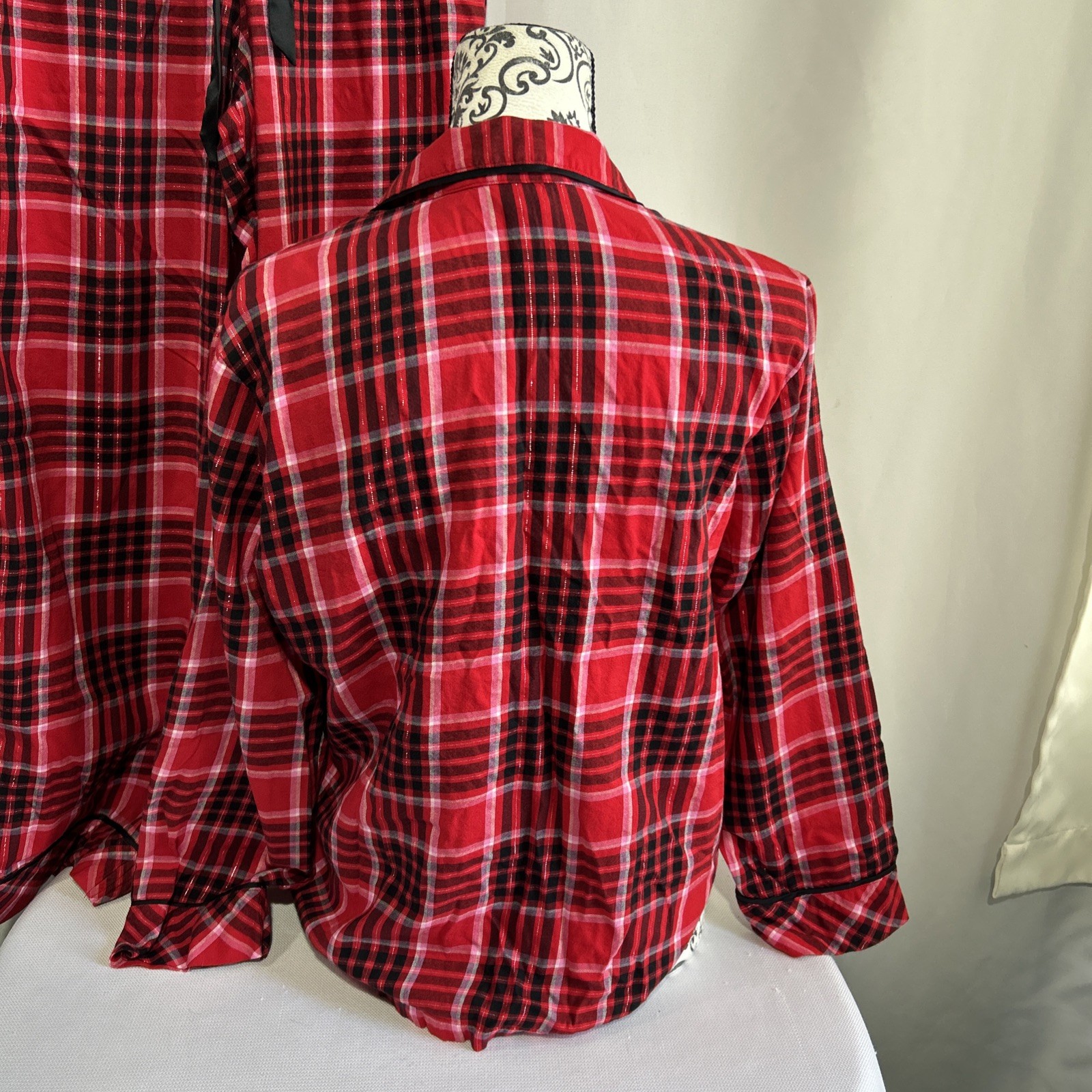 как выглядит Victoria s Secret Red Plaid Flannel Pajama Set Sz Small Long Sleeve Shirt Pants фото