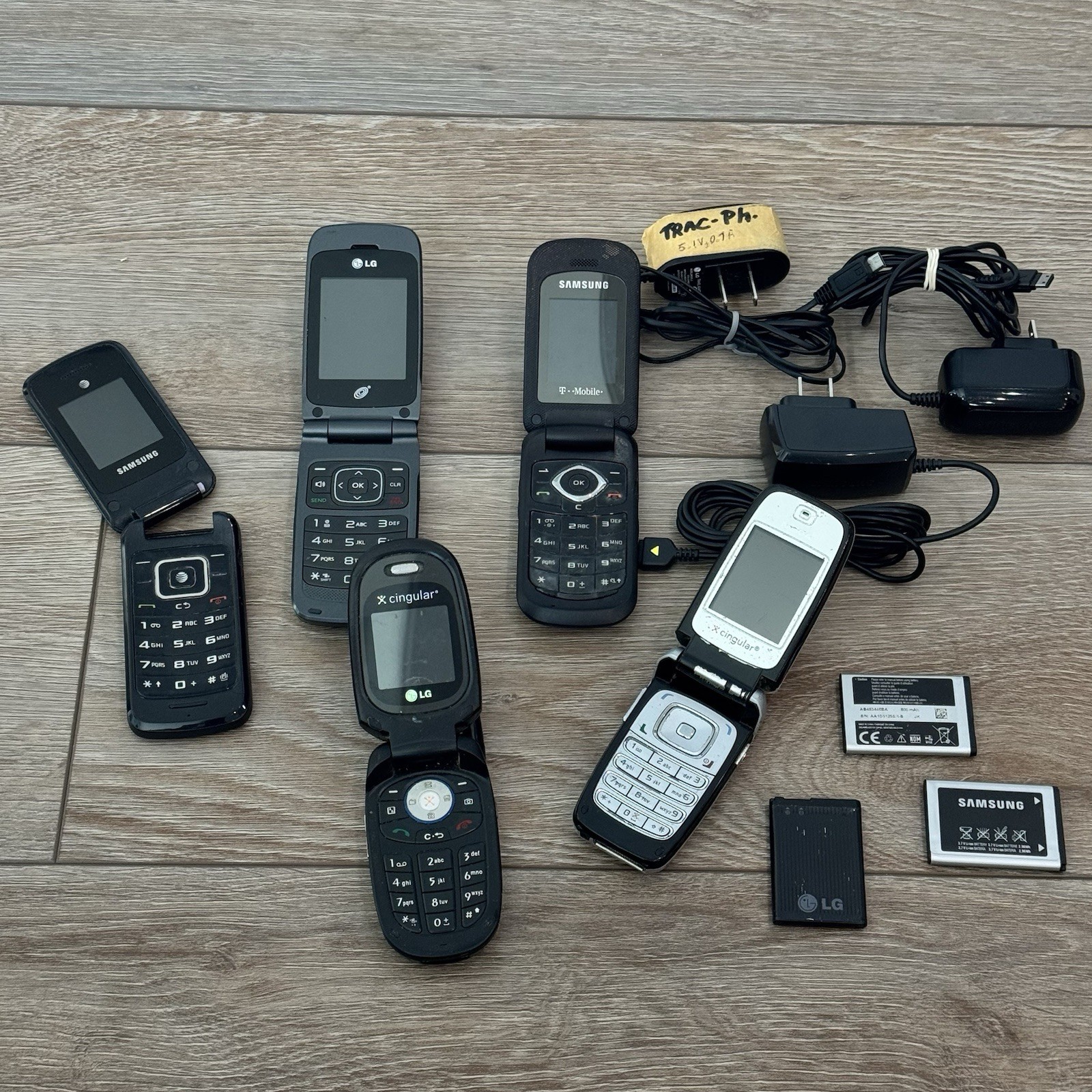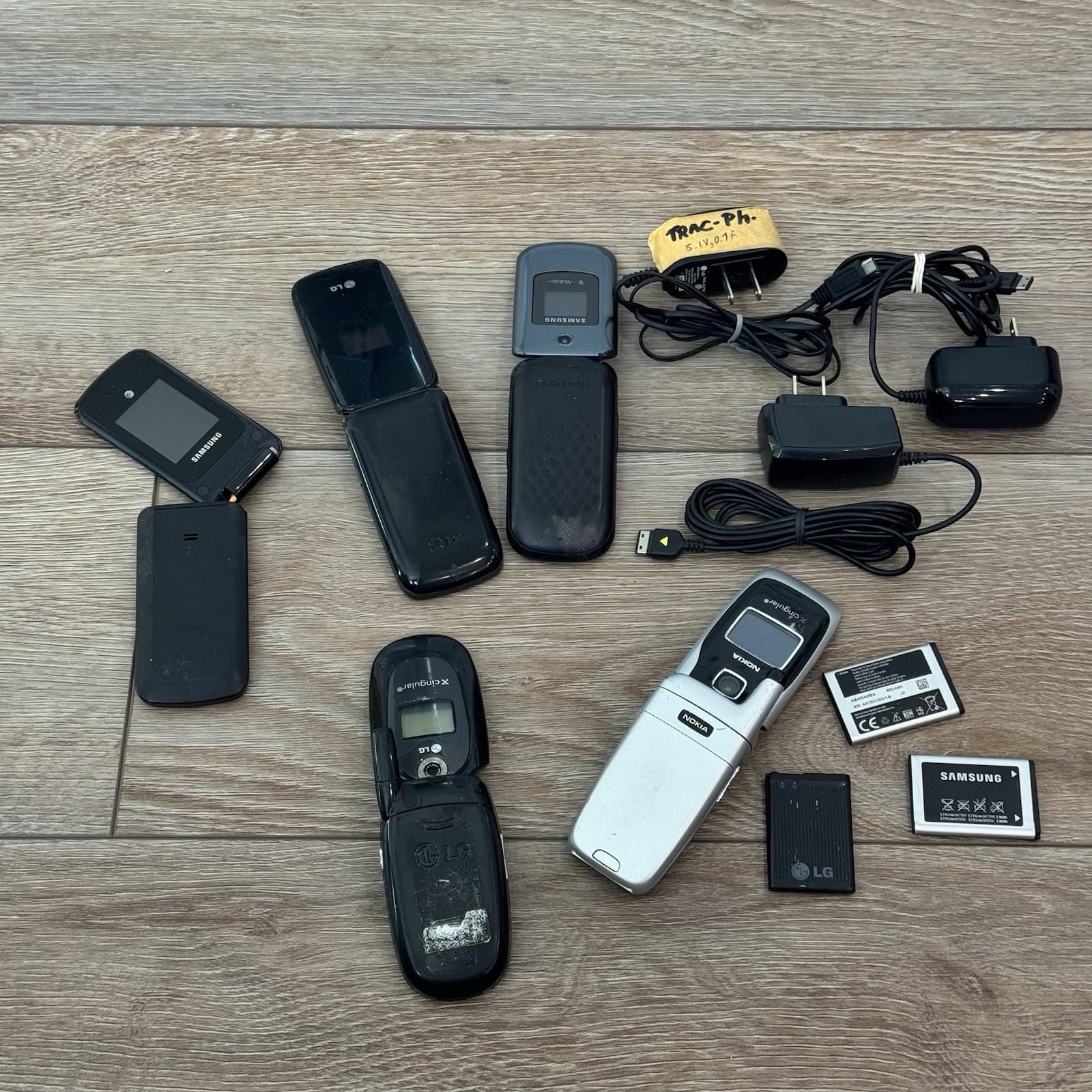 Vintage Flip Phone Lot of 5 AS-IS Untested Nokia Samsung LG OEM Chargers