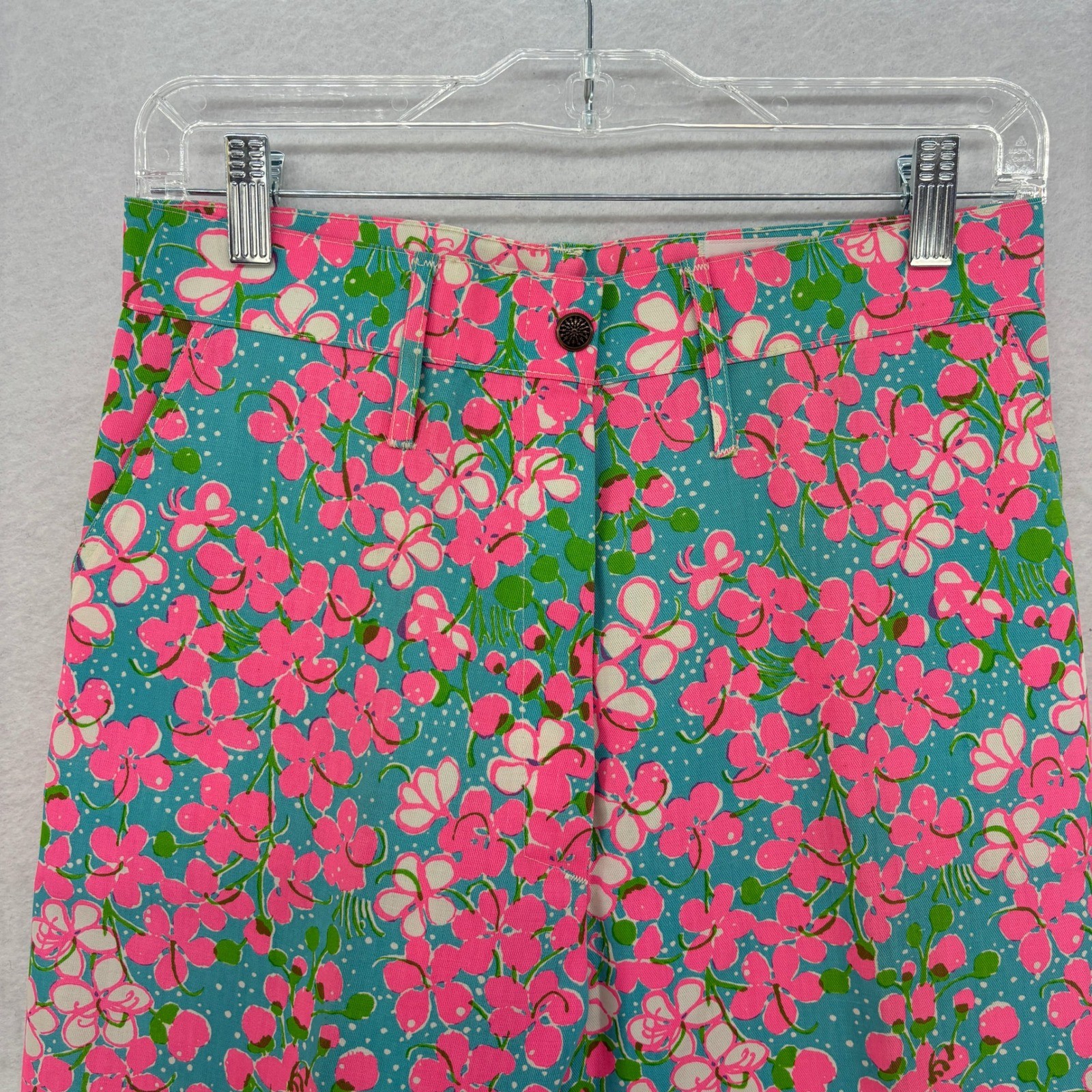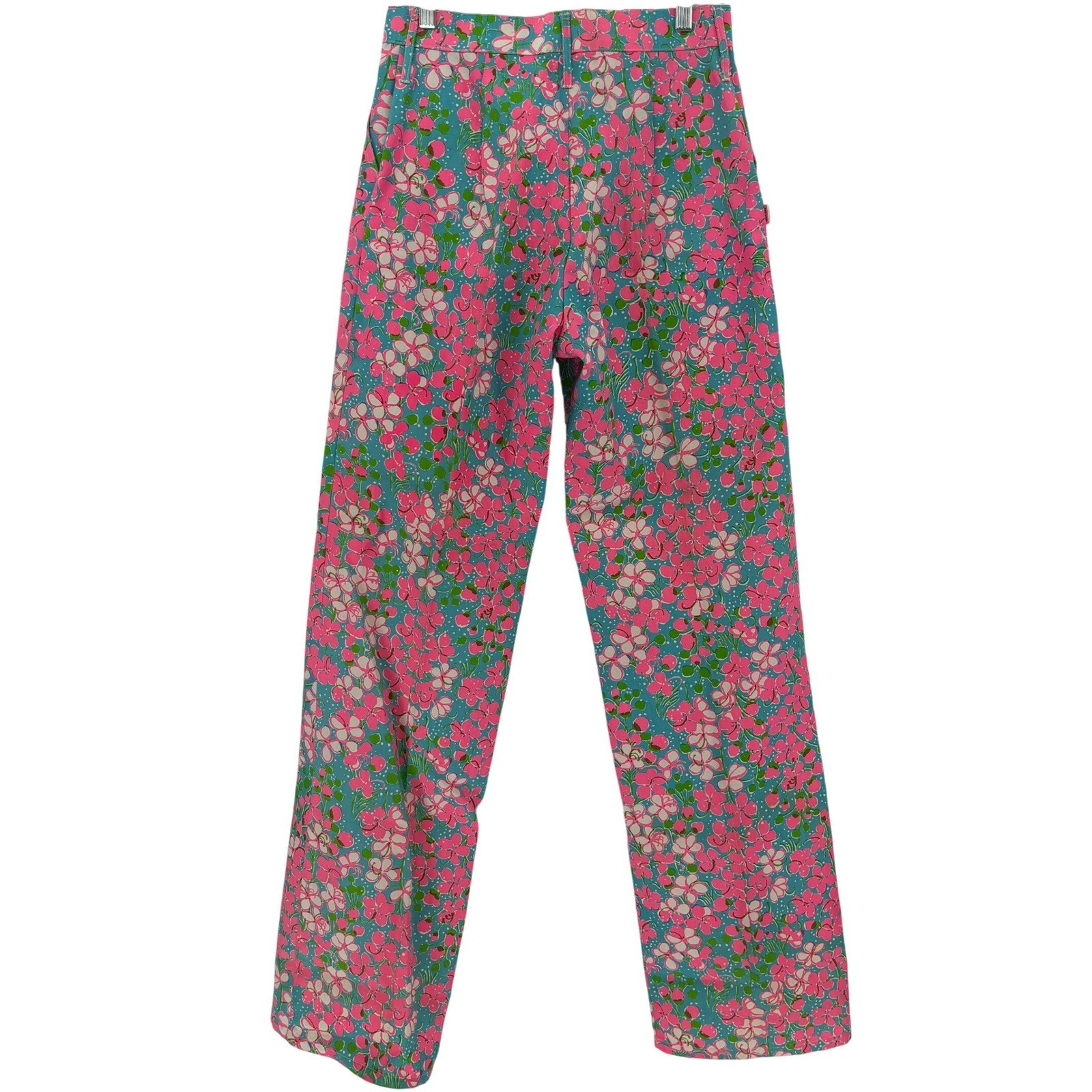 Vintage Liza by Lilly Pulitzer Floral Pants size 13 Pink Teal Retro 70s Hippie