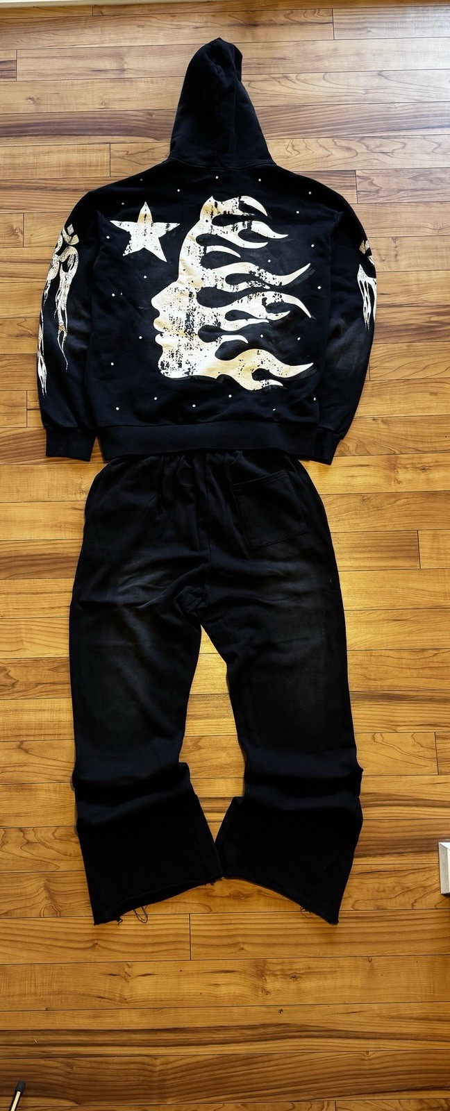 как выглядит Hellstar Black Star Hoodie Pants Set Medium Streetwear фото