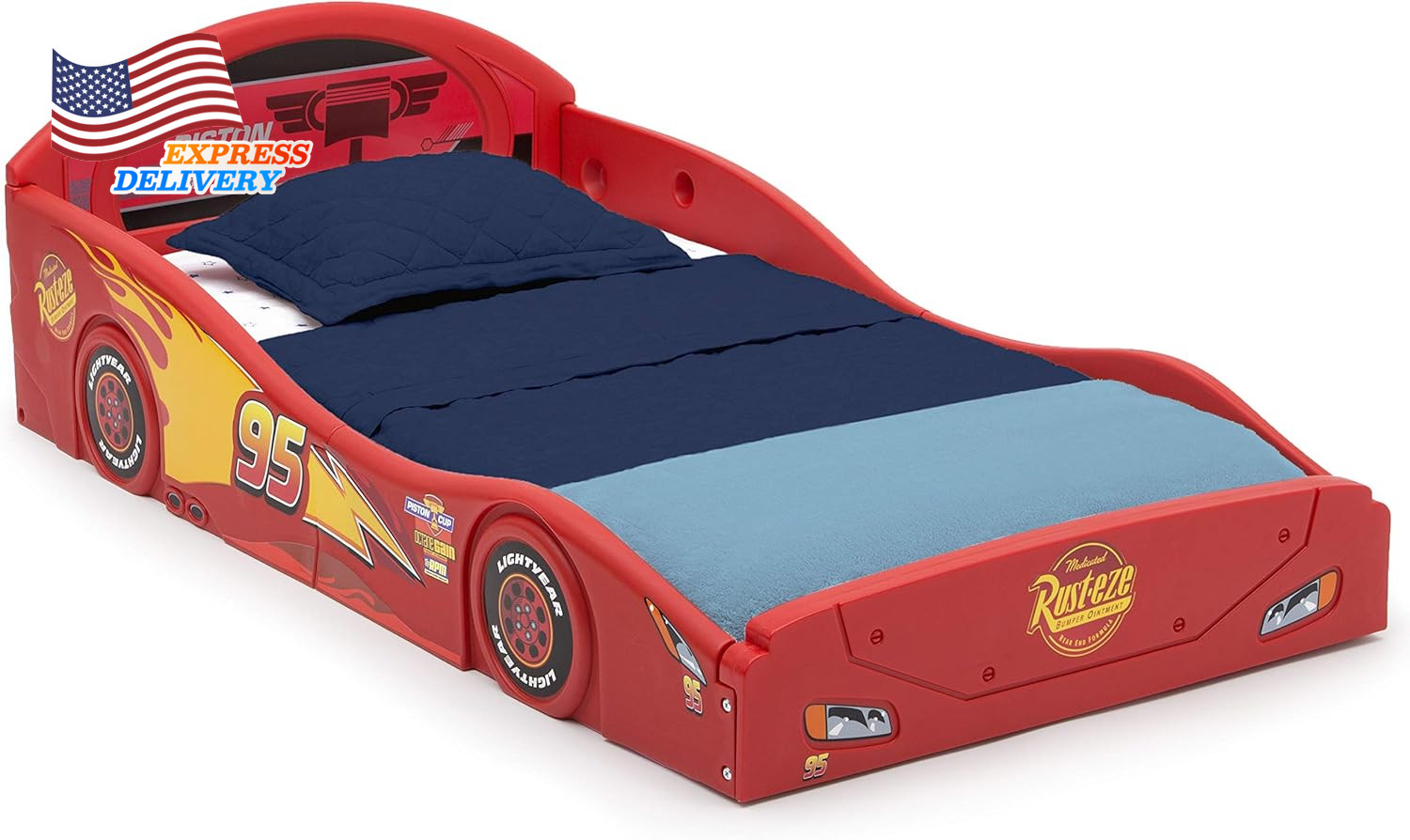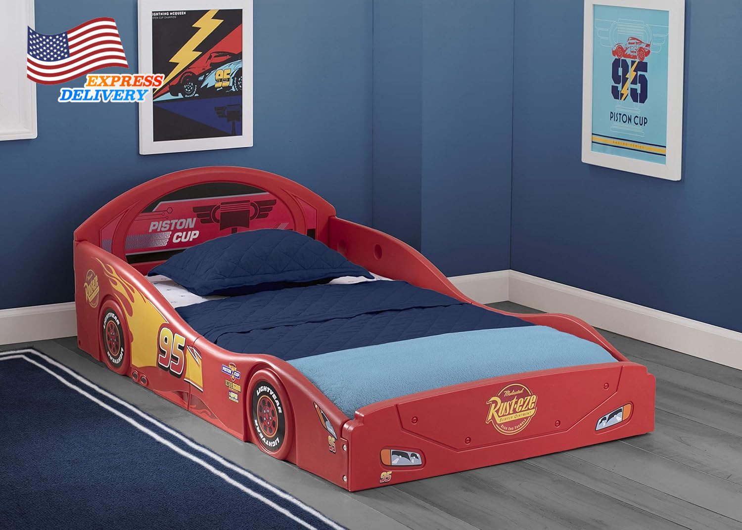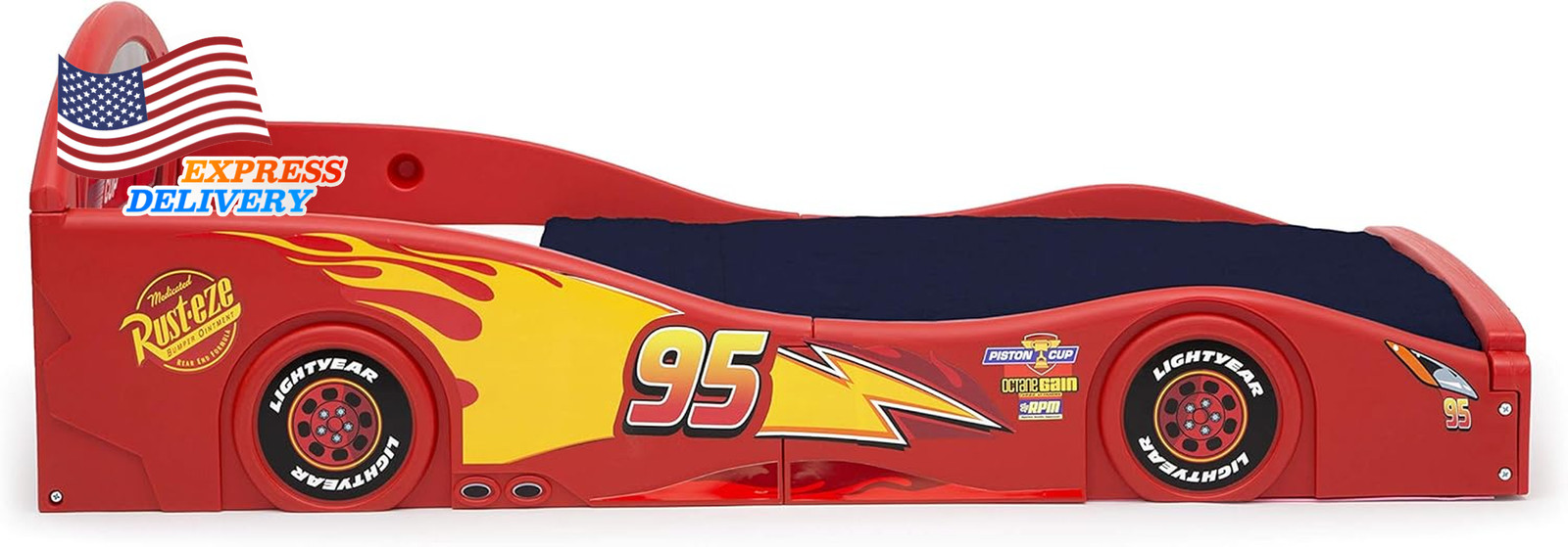 Disney Pixar Car Lightning Mcqueen Race Car Toddler Bed with Attached Guardrails