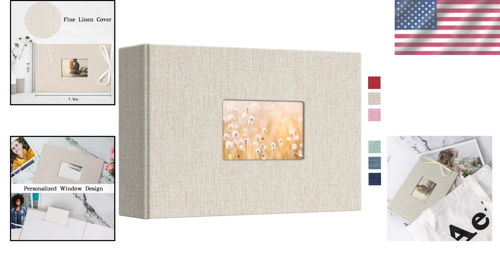 Compact 4x6 Photo Album with Memo Spaces - 50 Pocket Linen Wedding, Baby