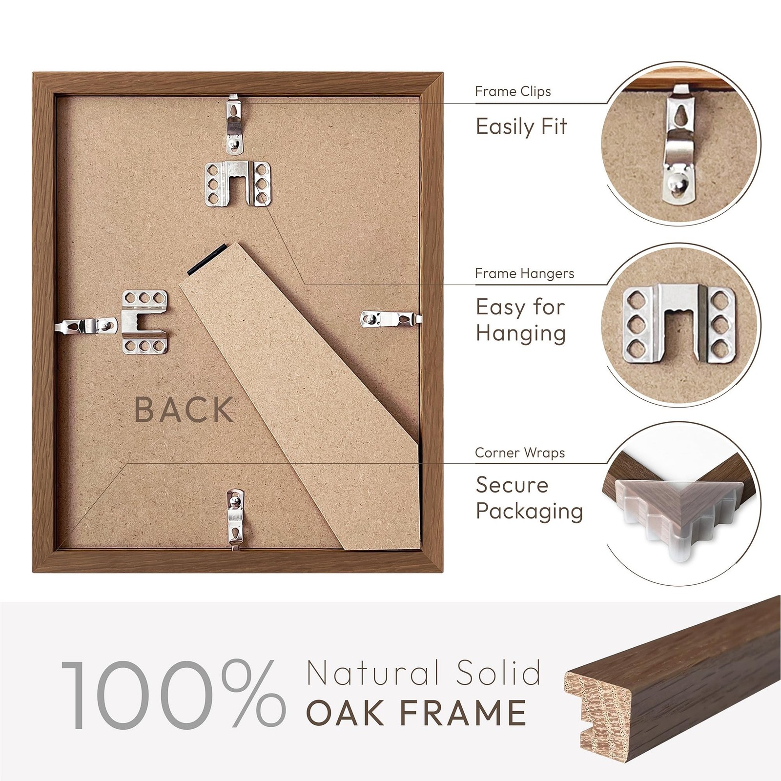 8x10 Picture Frame, Solid Oak Wood 8 x 10 Photo Frame with Mat to 5x7 Opennin...