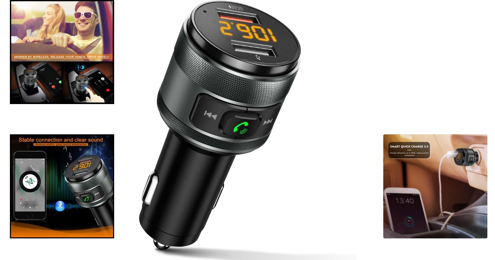 High-Quality Bluetooth FM Transmitter with Hands-Free MIC Dual USB Charger