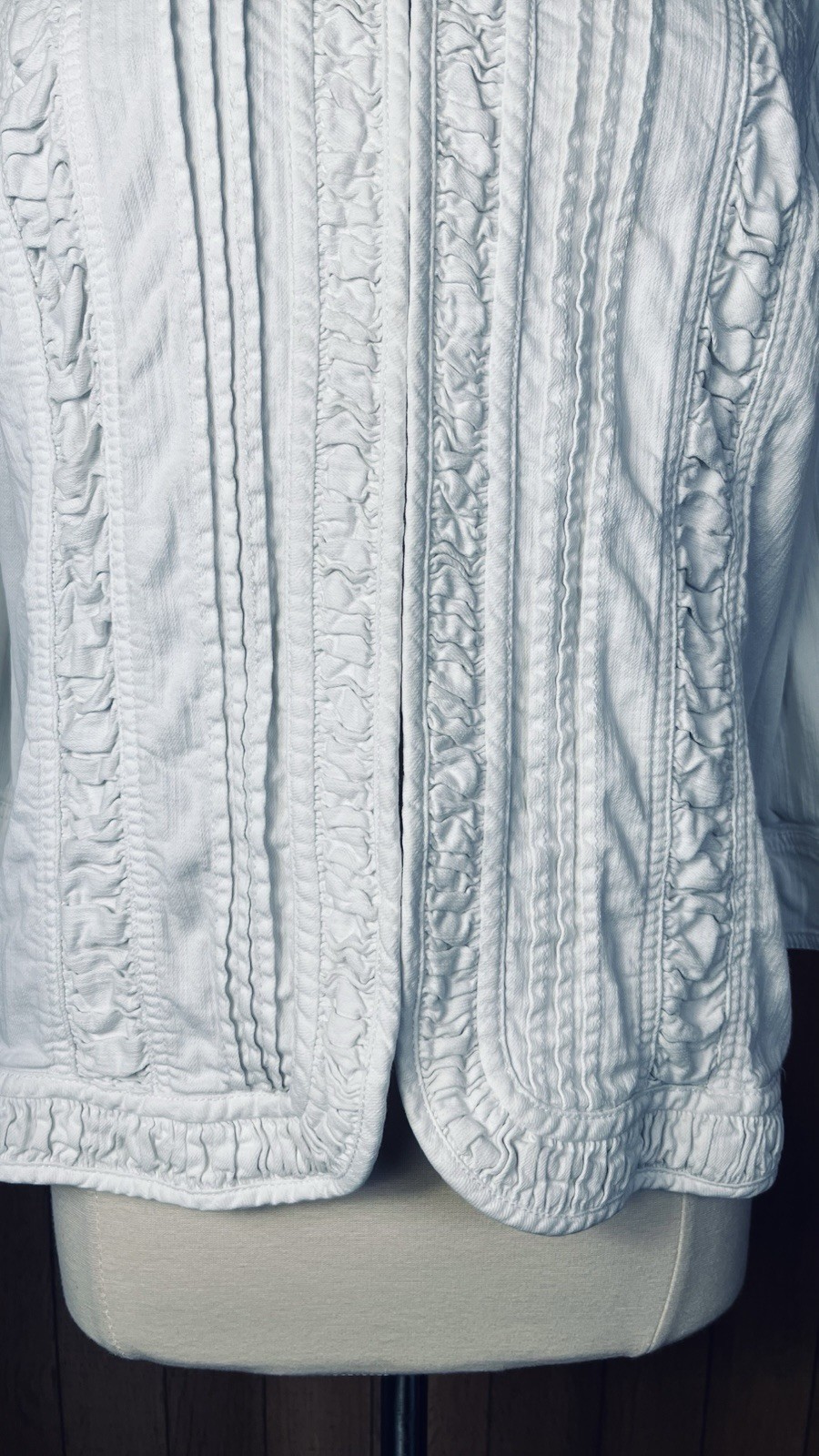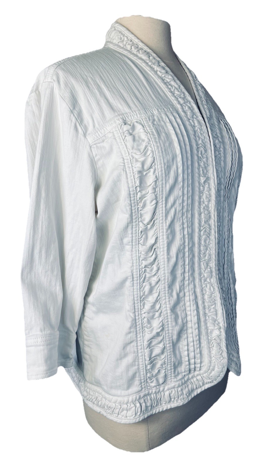 CHICO S Platinum Size 3, US XL Marin 3/4 Sleeve White Denim Jacket Ruched