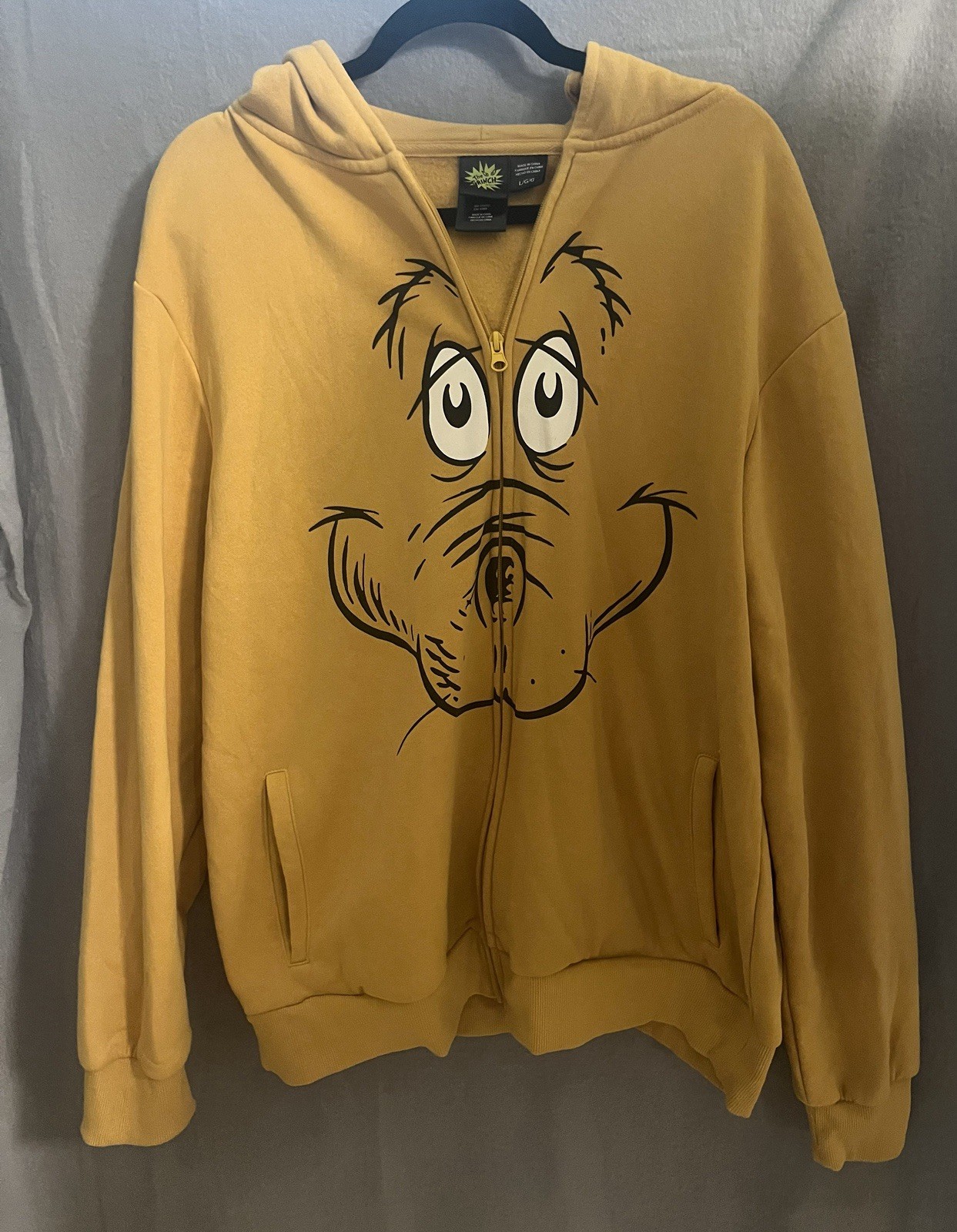 Grinch Men's Sweatshirt Large Max The Dog Face Dr Seuss Hoodie Christmas Zip Up