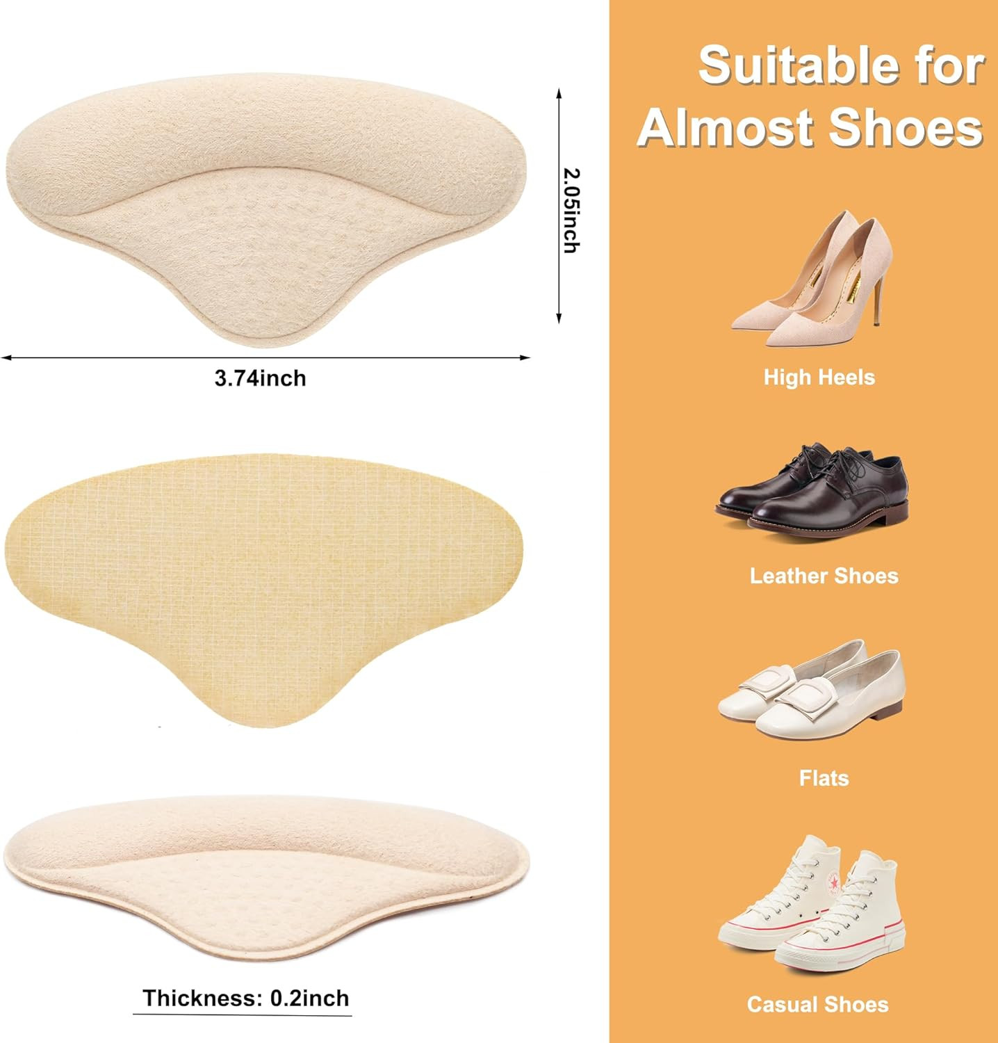 Heel Cushion Pads, 4 Pairs Shoe Inserts for Loose Shoes, Beige Heel Grips Liner
