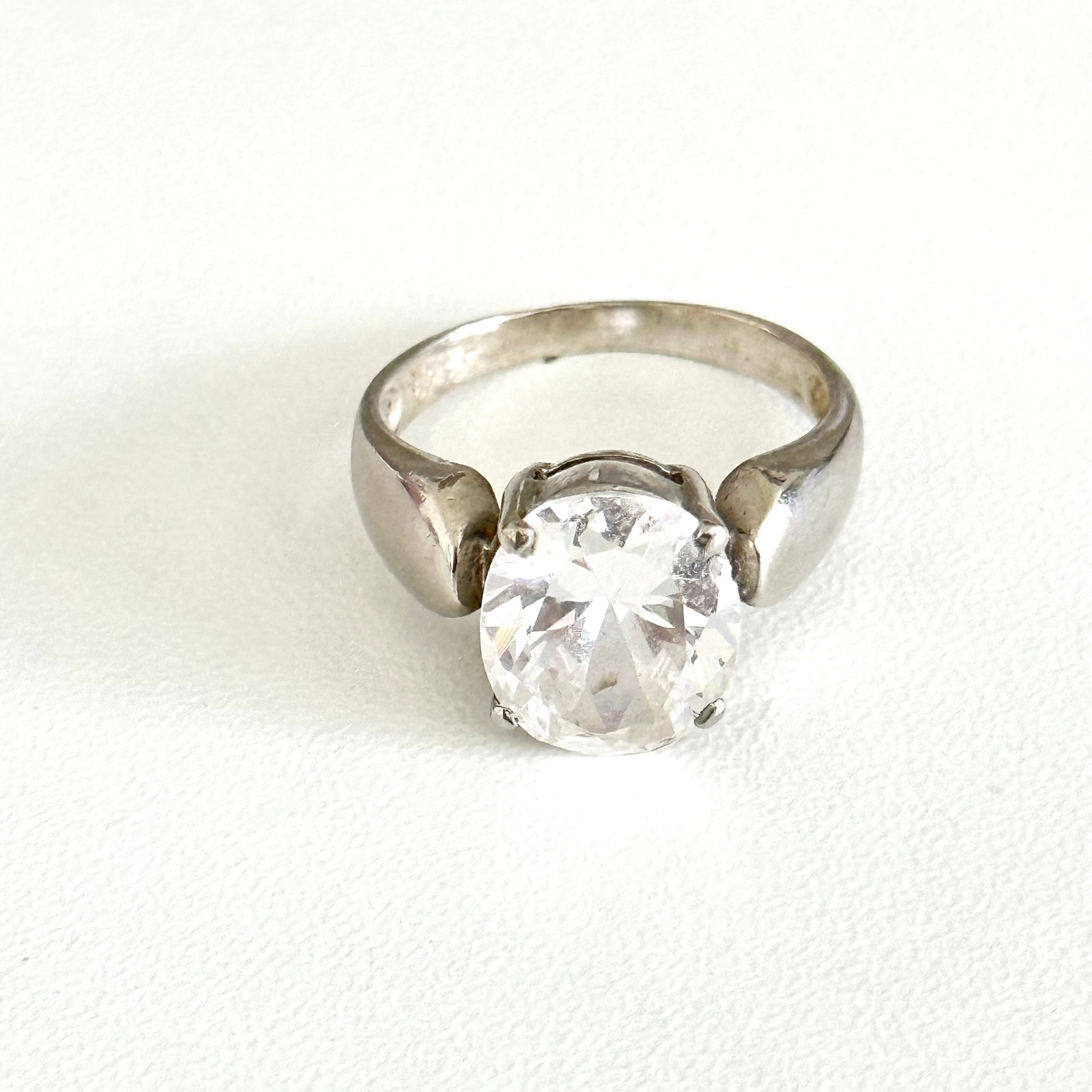 как выглядит 925 Sterling Silver Vintage Clear CZ Sparkly Solitaire Ladies Band Ring Size 7 фото
