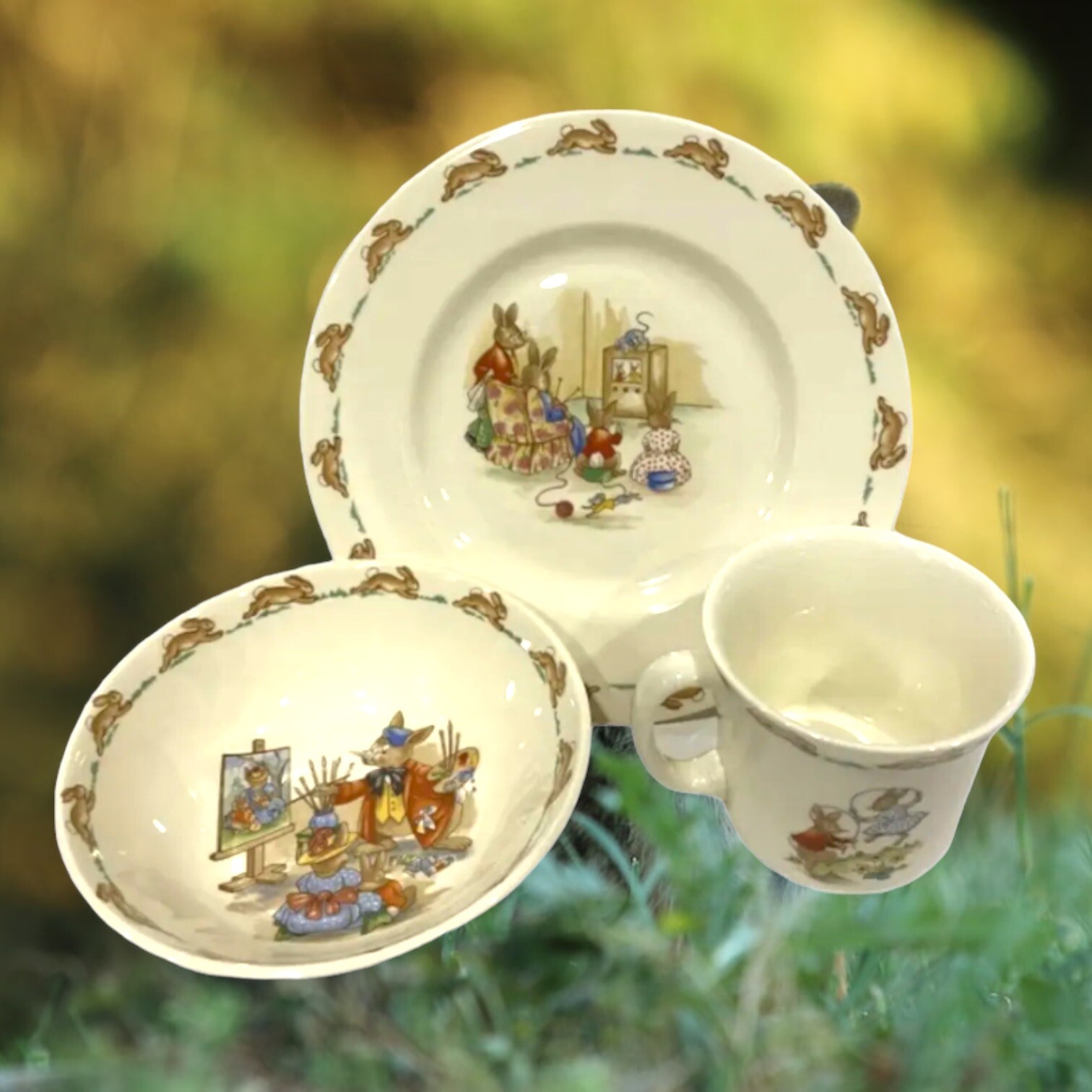 • Vintage 1981 Royal Doulton Bunnykins 3 pc Children's Bowl, Cup Plate Set NIB
