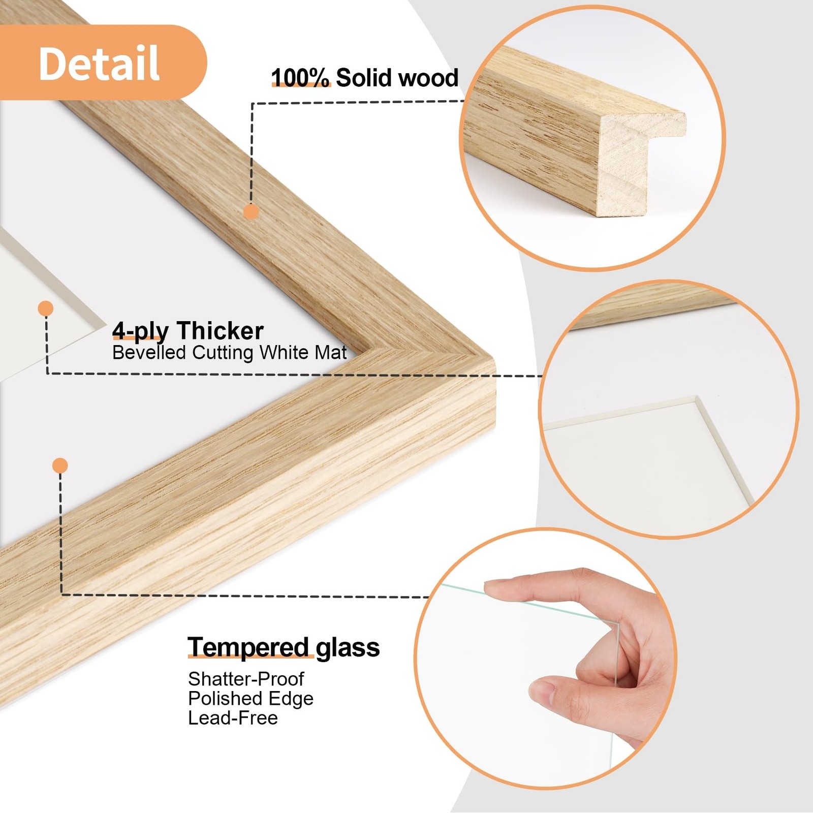 8x10 Picture Frame with Mat for 5x7 Set of 3, Natural Solid Oak Wood Picture ...