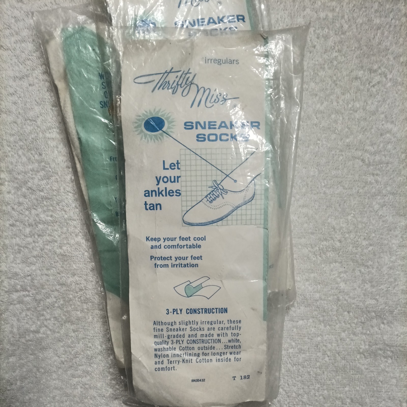 Vintage Thrifty Miss White Sneaker Socks Low Cut No-Show Cotton/Nylon Size 10-11