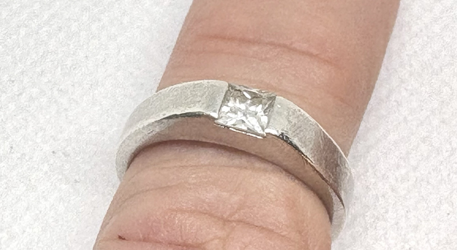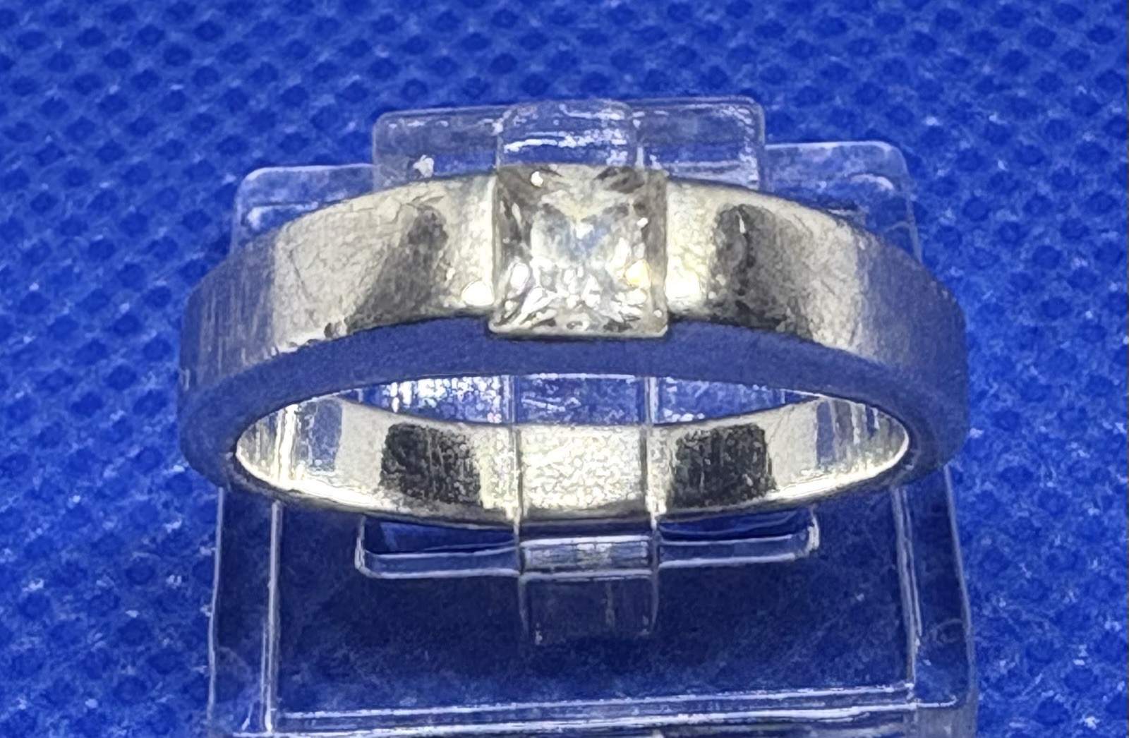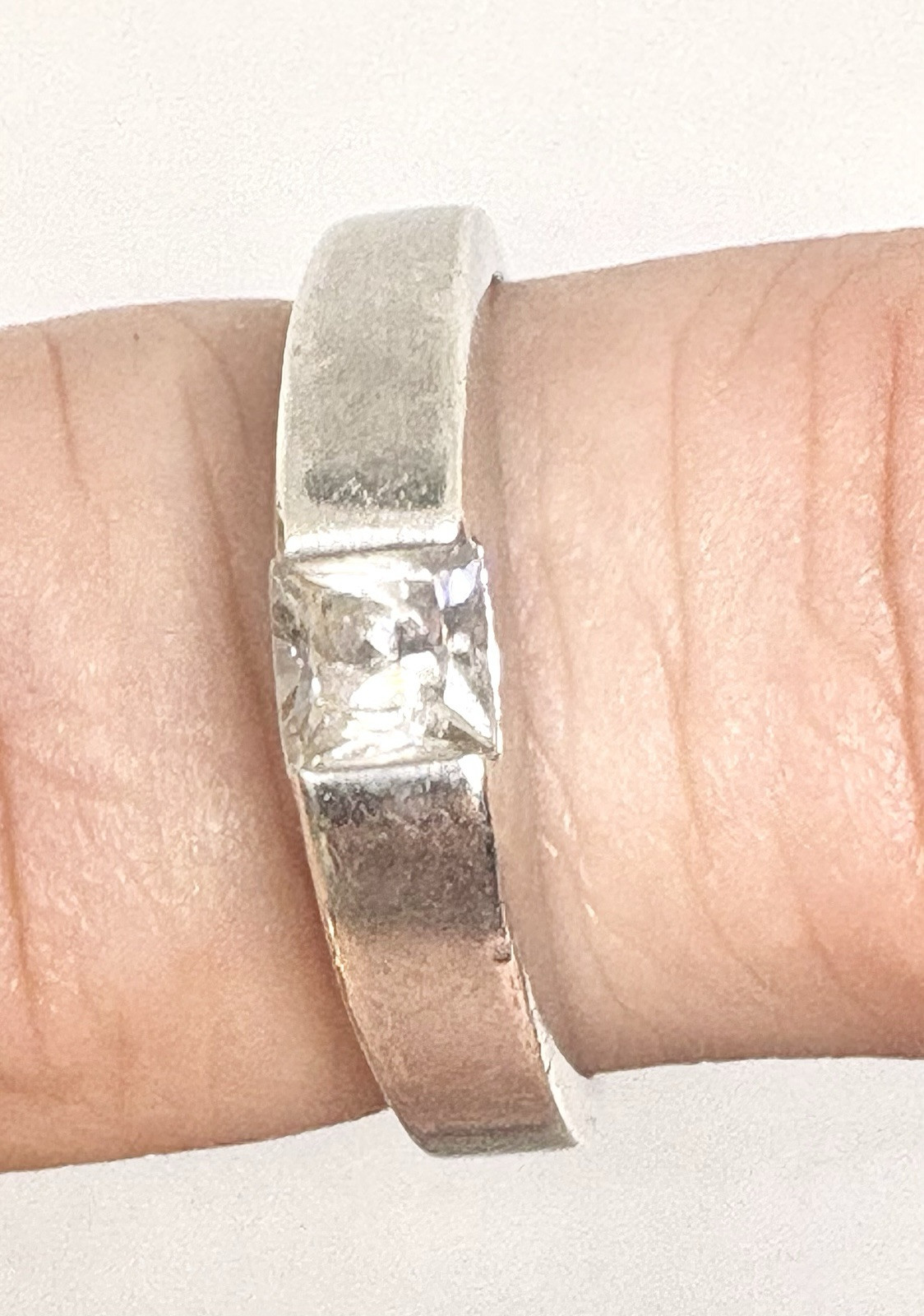 R57 VINTAGE Solitaire 4.5 mm Zirconia 1/2 Ct 925 Silver Ring size 6.25