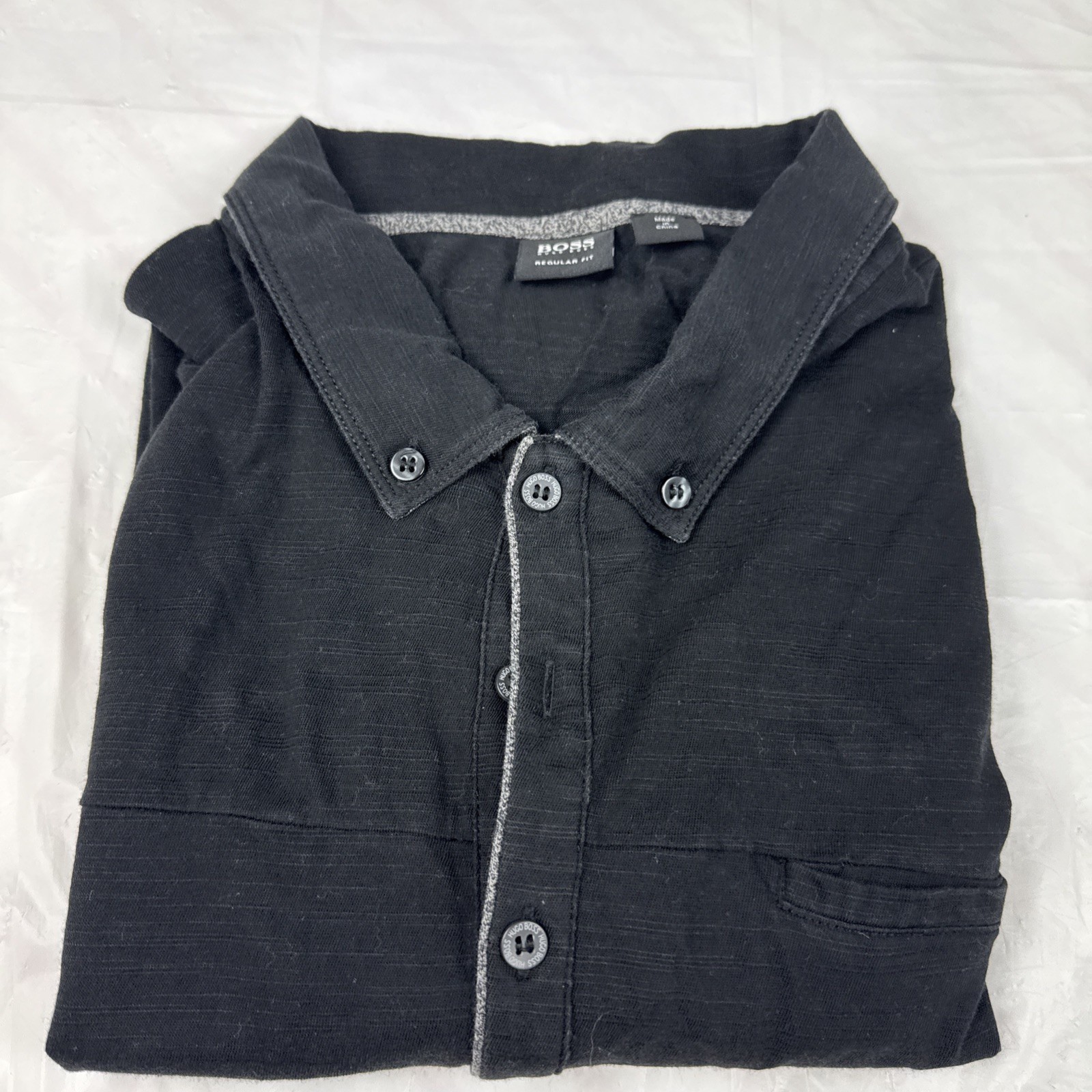 HUGO BOSS MENS SHORT SLEEVE POLO COLLARD SHIRT BLACK Regular Fit Size XL