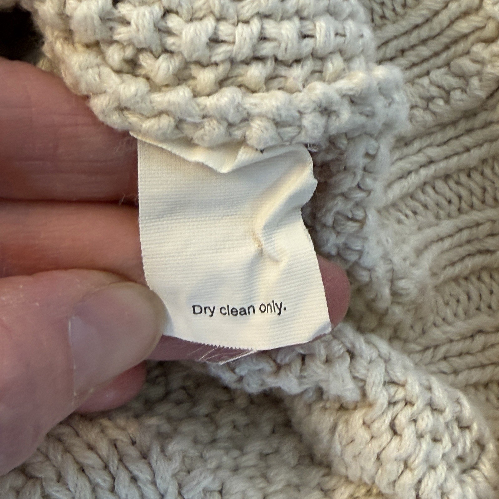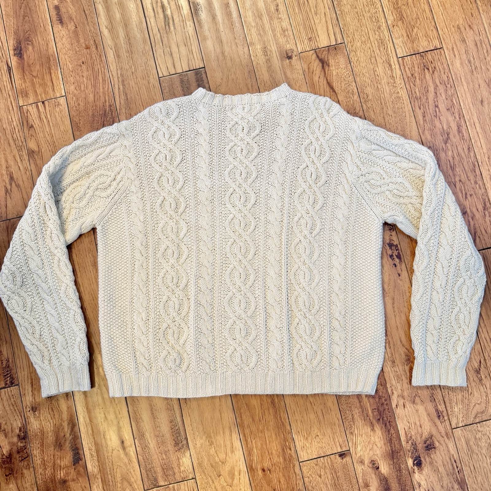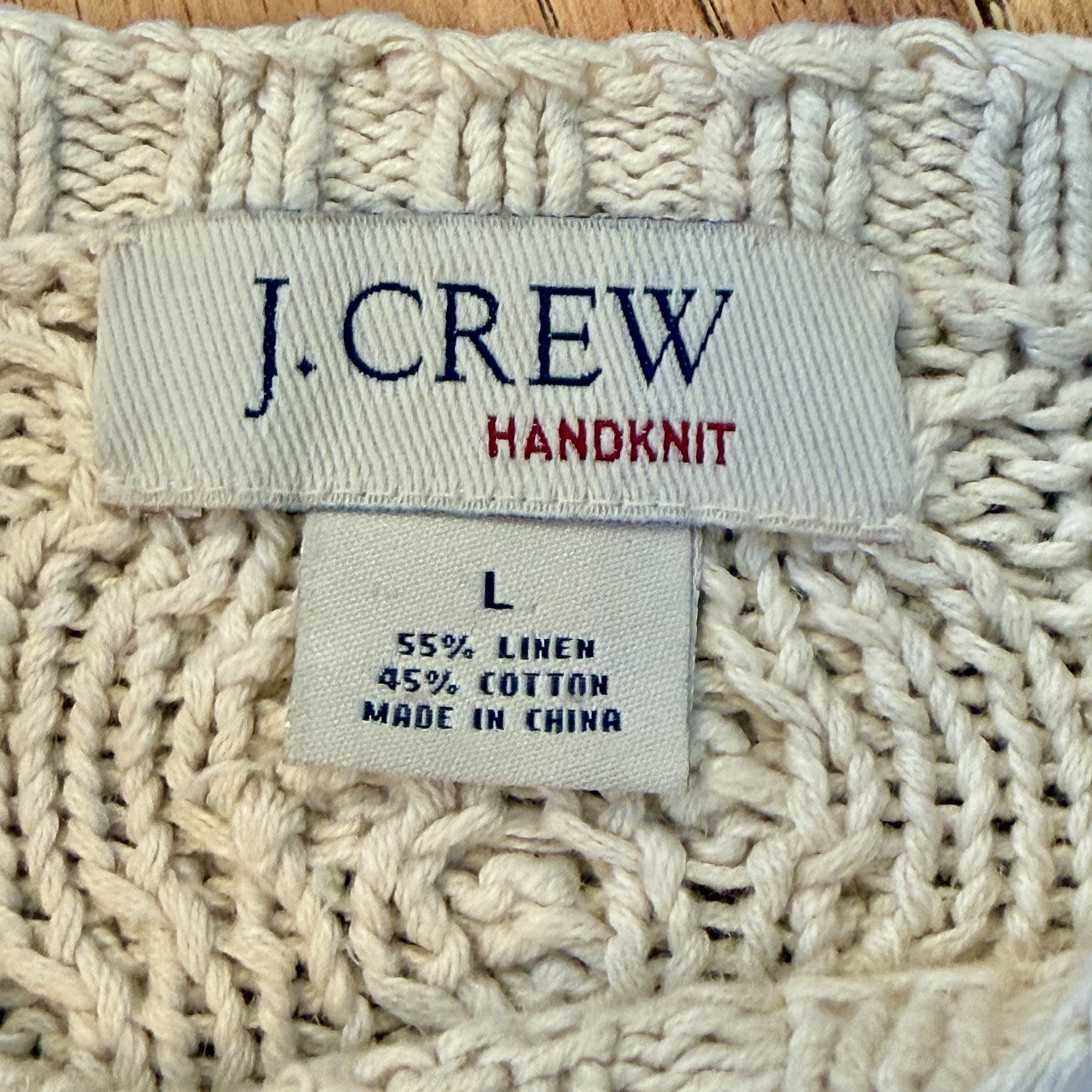 J Crew Ivory Hand-knit Chunky Fisherman Cable Crewneck Sweater Women s Size L