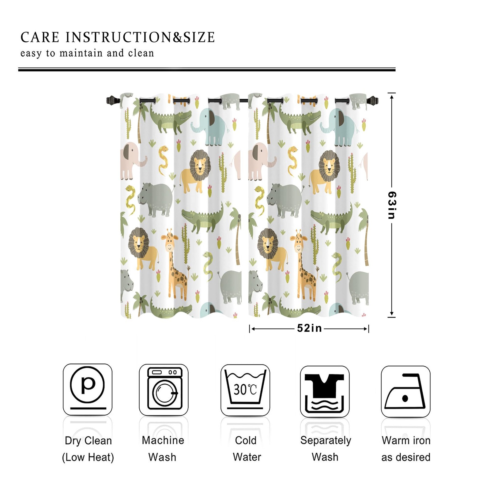 MESHELLY Baby Safari Animals Blackout Curtains 52x63 - Boys Bedroom Grommet
