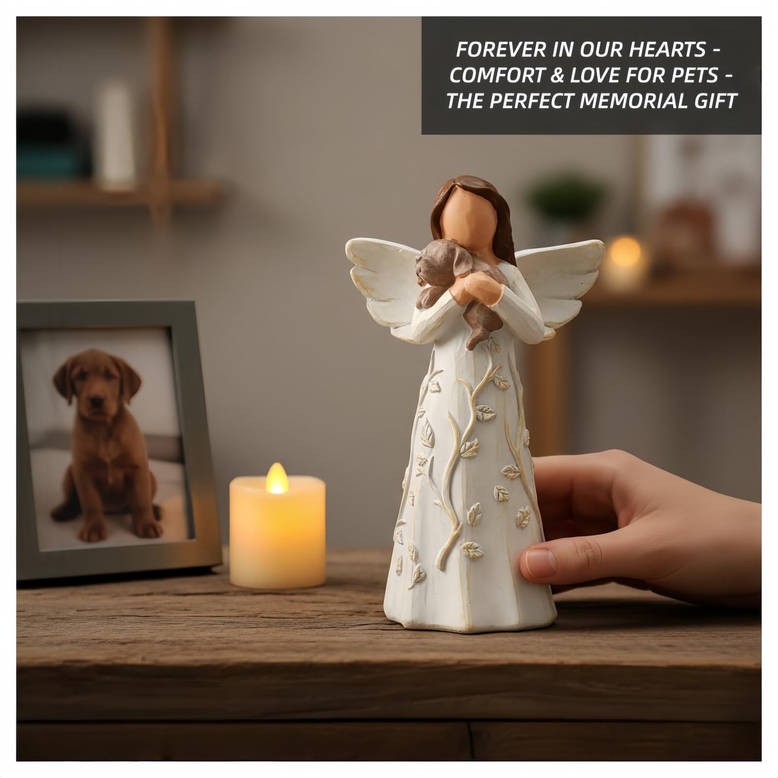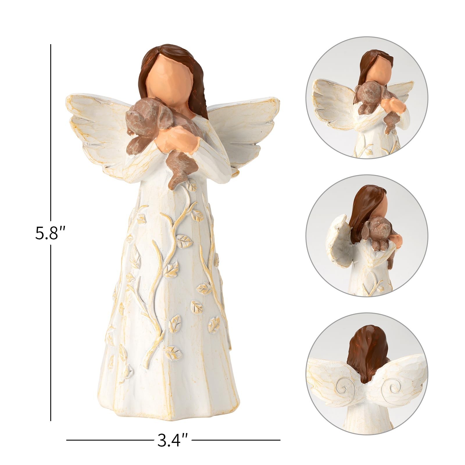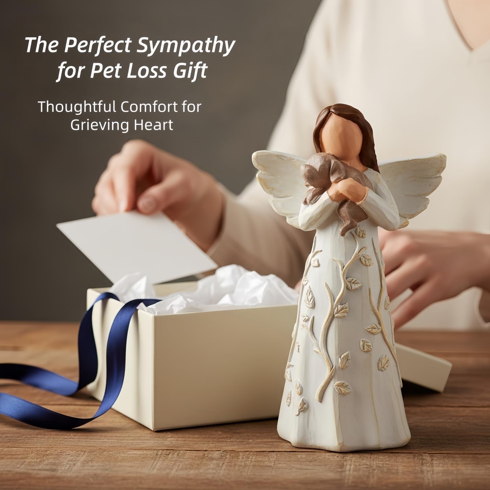Friendship Angel Figurine with Dog Sculpture, Hand-Painted Memorial Gift for ...