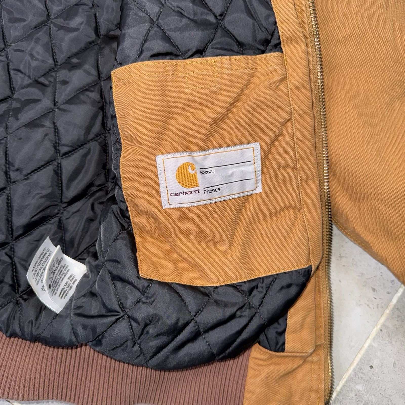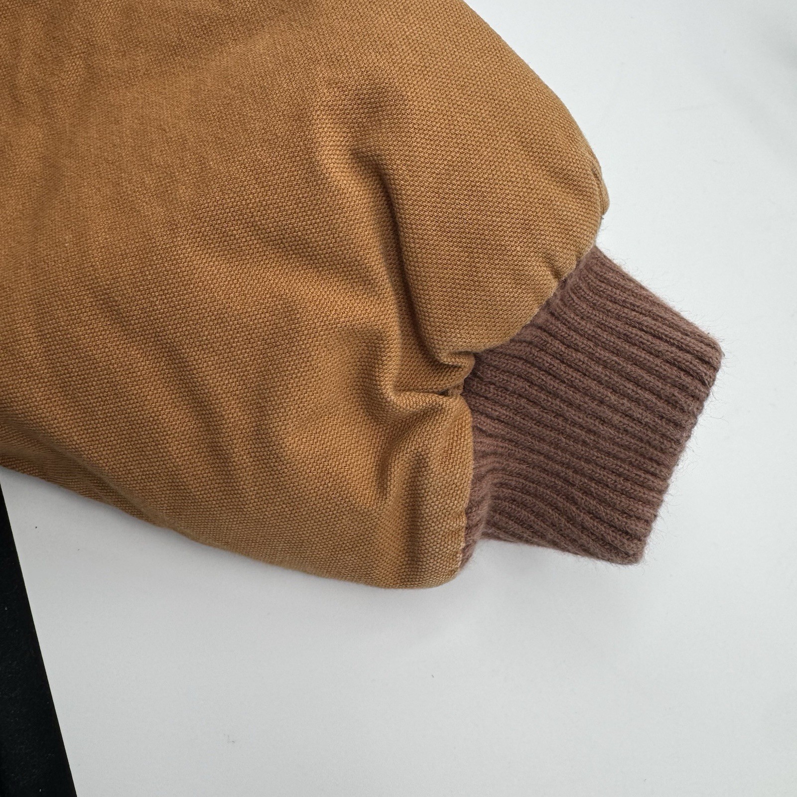 Carhartt Youth Medium 10 12 Brown Hooded Canvas Quilted Lined Jacket Coat EUC