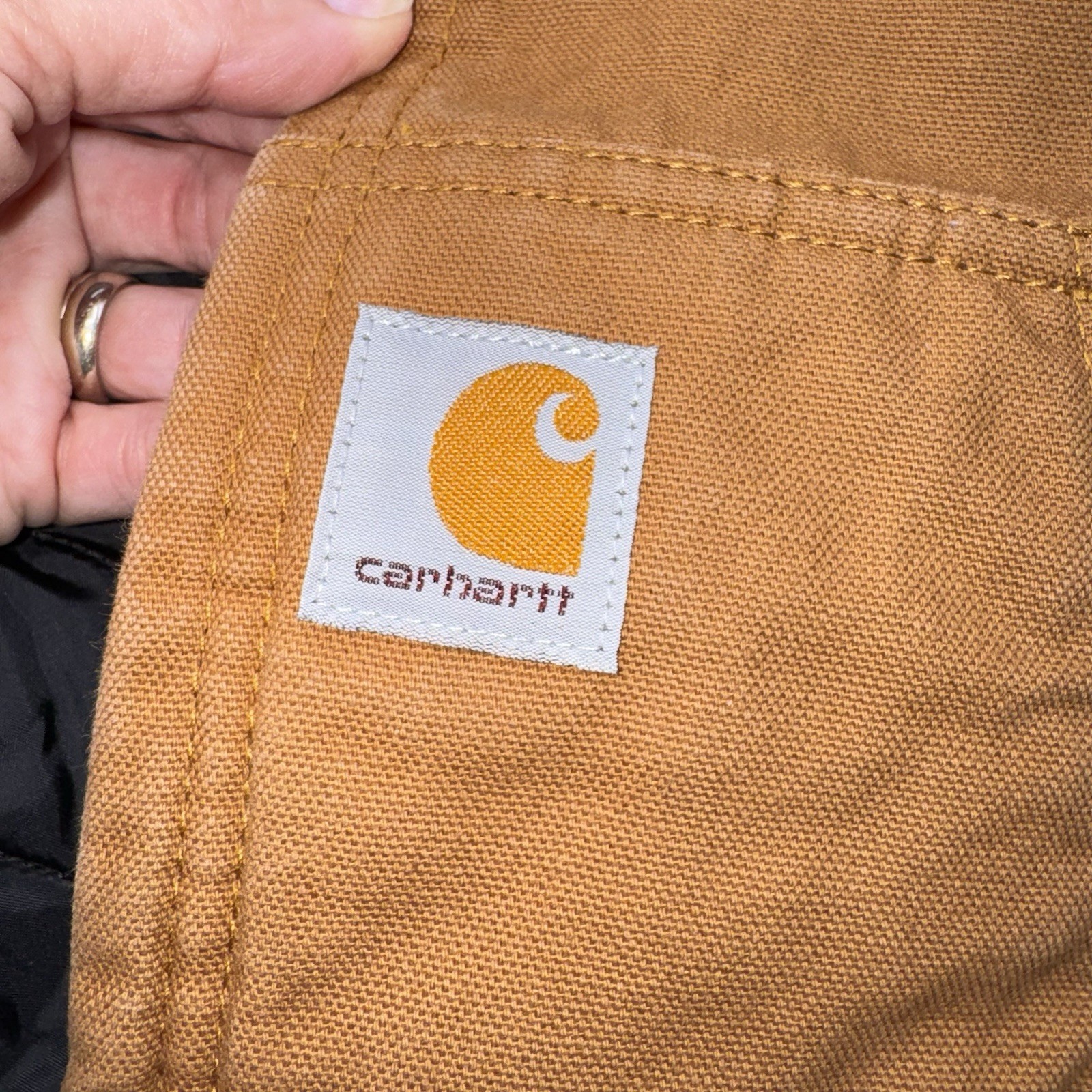 как выглядит Carhartt Youth Medium 10 12 Brown Hooded Canvas Quilted Lined Jacket Coat EUC фото