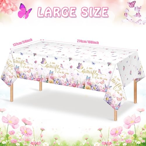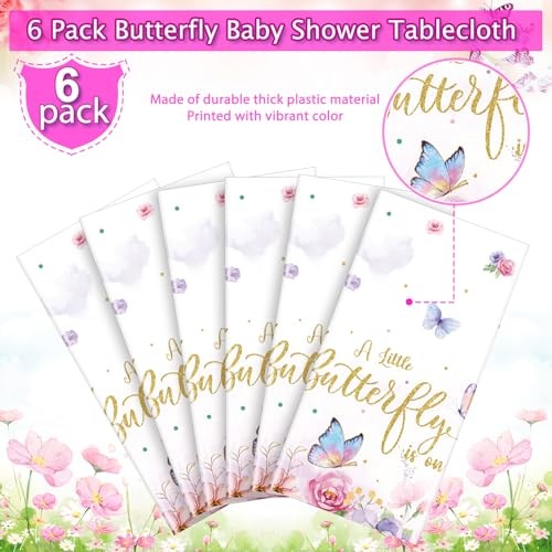 6 Pack Butterfly Baby Shower Tablecloth, Little Butterfly 54 x 108 6 Pack