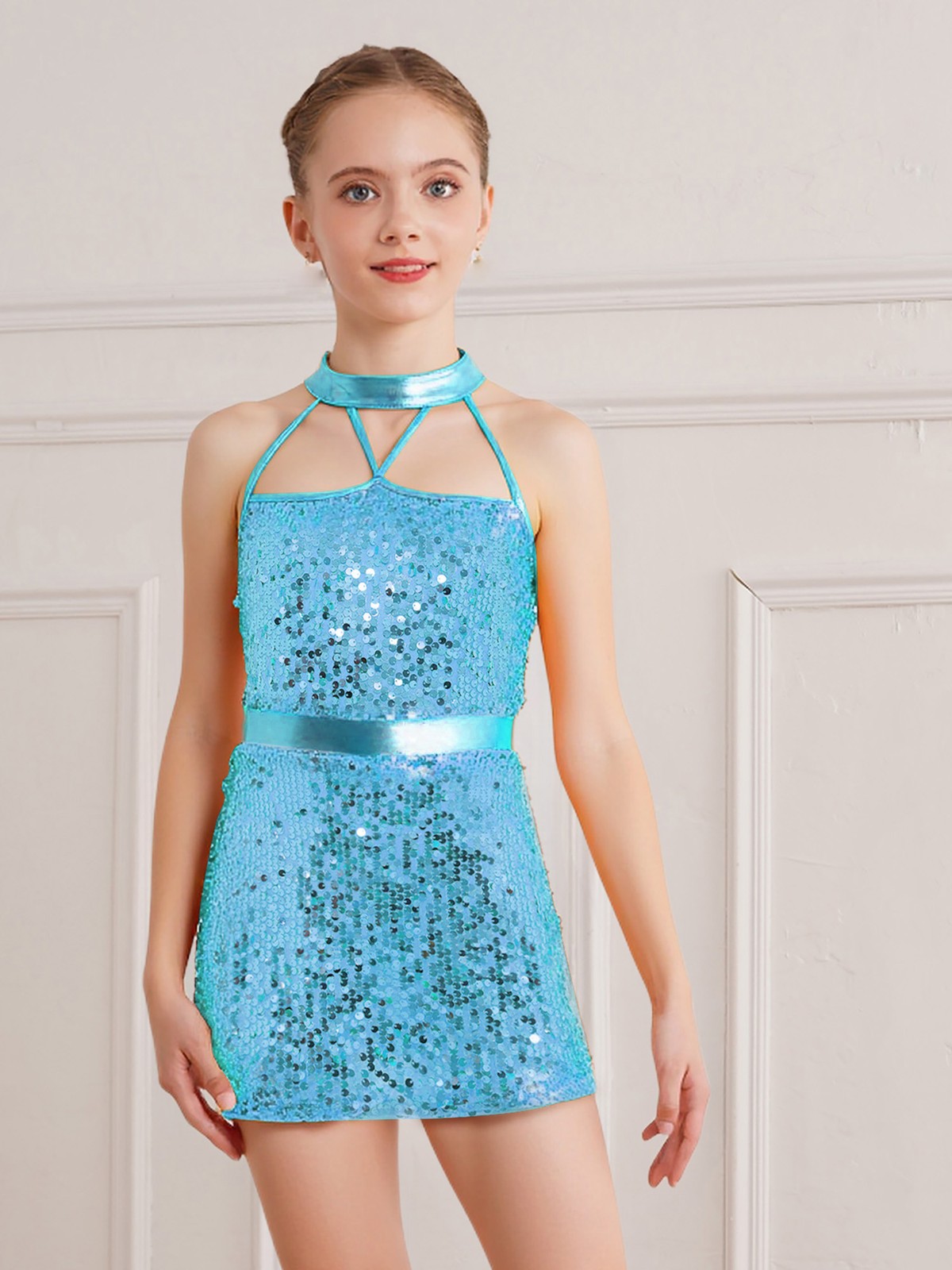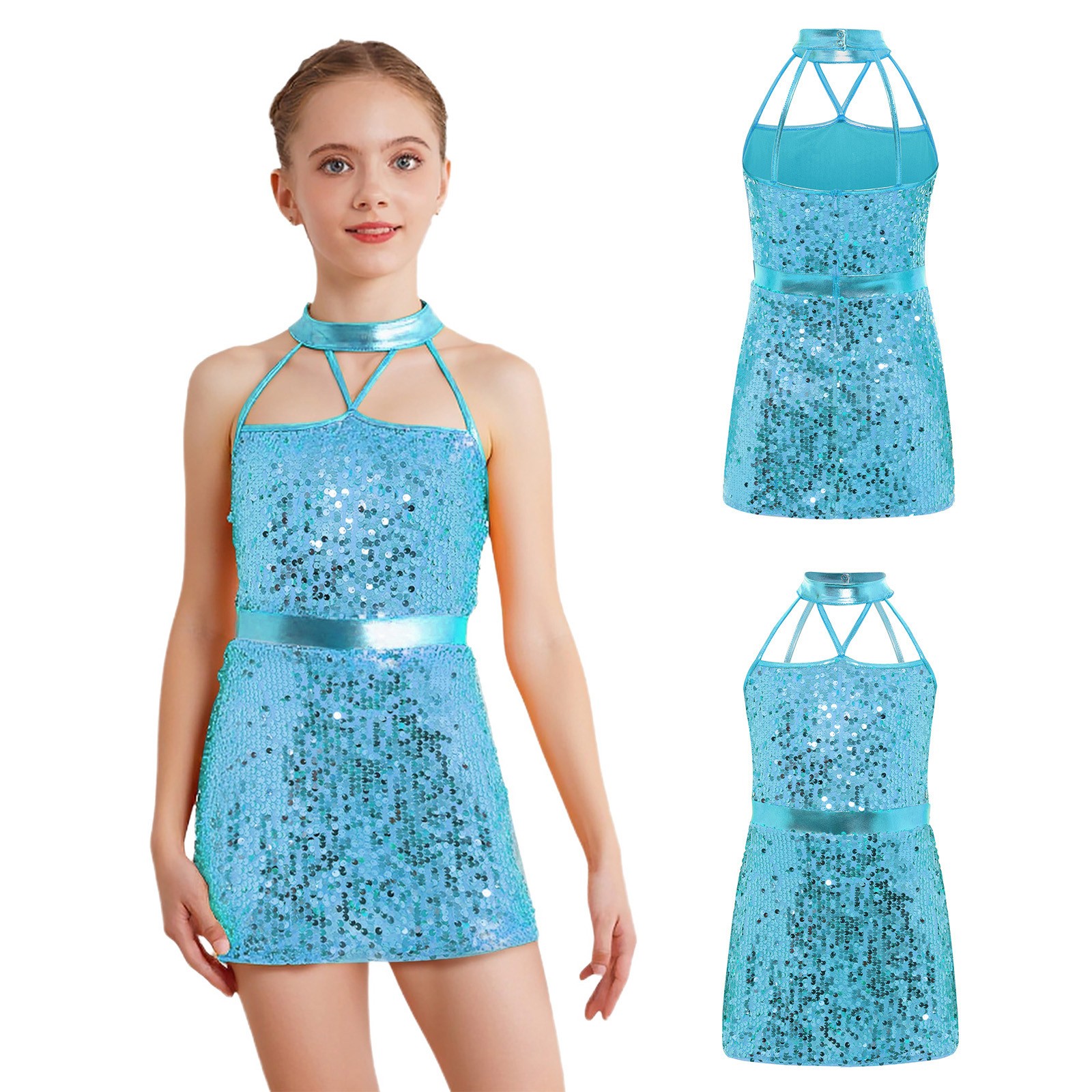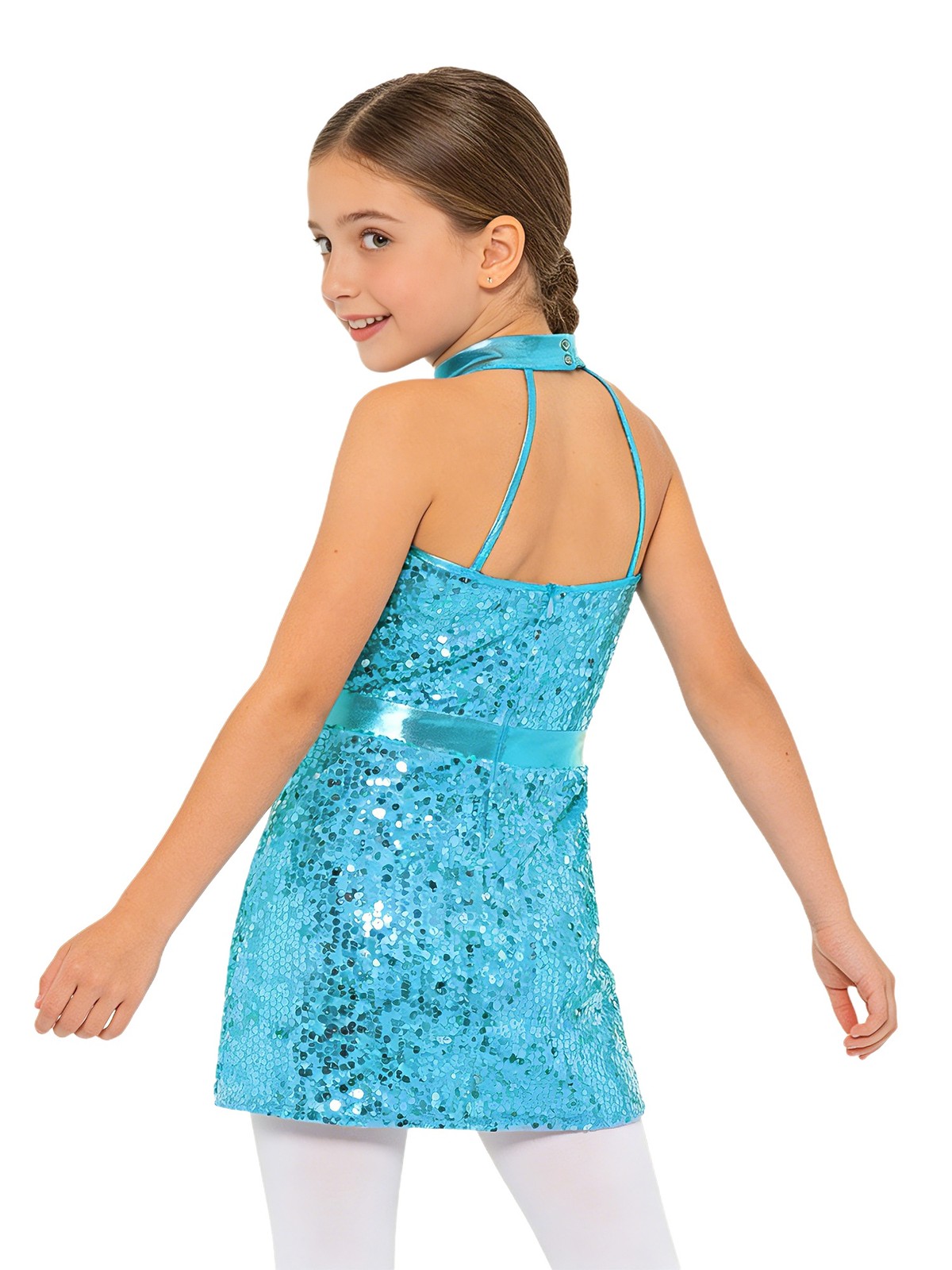 как выглядит US Kids Ballet Dance Sleeveless Sequin Dress Shiny Leotard Sparkly Dancewear фото