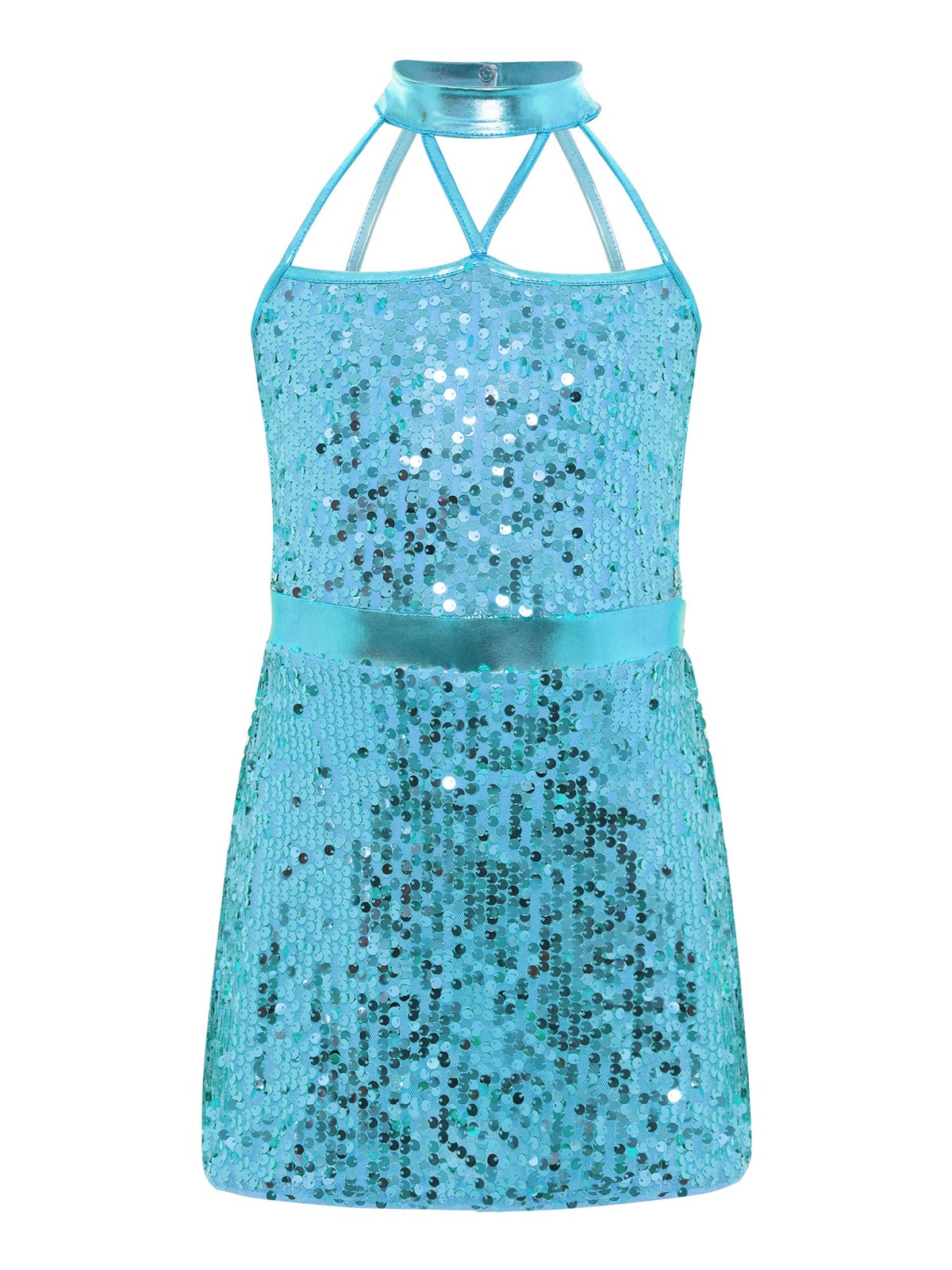 US Kids Ballet Dance Sleeveless Sequin Dress Shiny Leotard Sparkly Dancewear