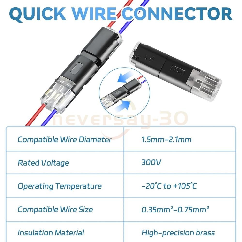 50Pcs Double-Wire Plug-in Connector 2 Pin, Cable Clamp with Locking Buckle New