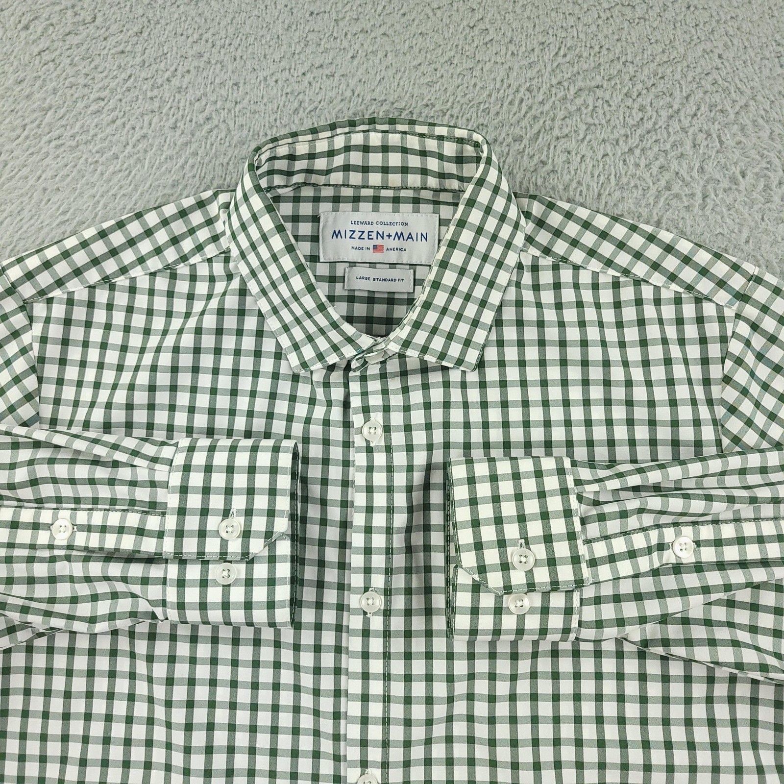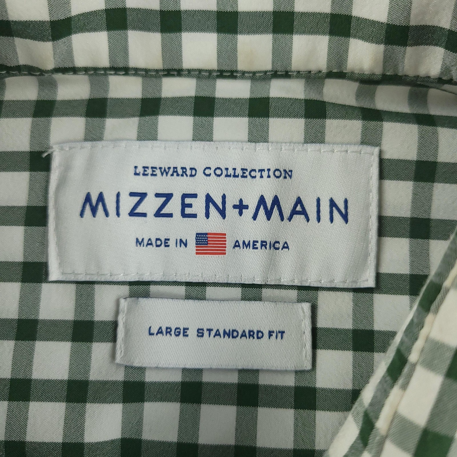 Mizzen Main Dress Shirt Mens Large Green Gingham Leeward Standard Fit USA Made