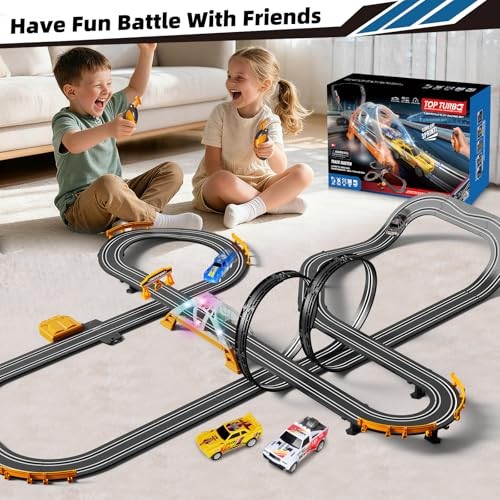 Slot Car Racing Track for Kids with 4 Cars Battery or Electric Powered Dual