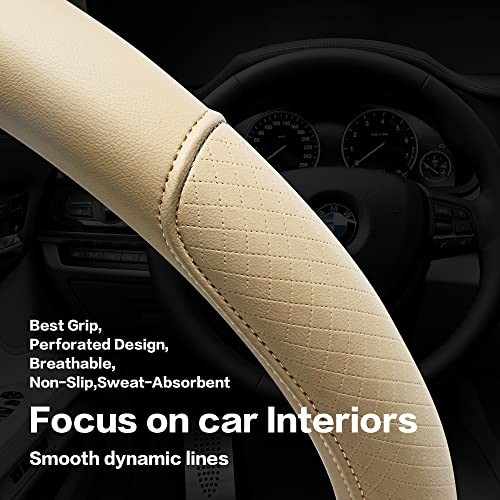 Microfiber Leather Steering Wheel Cover with Classic Embossing, Anti Beige