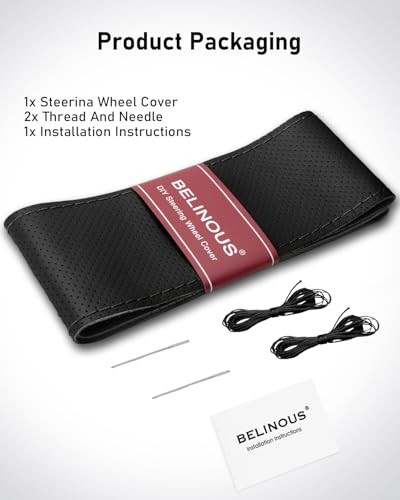 как выглядит Universal Leather Car Steering Wheel Cover, Stitch On Wrap Size M4 Black фото
