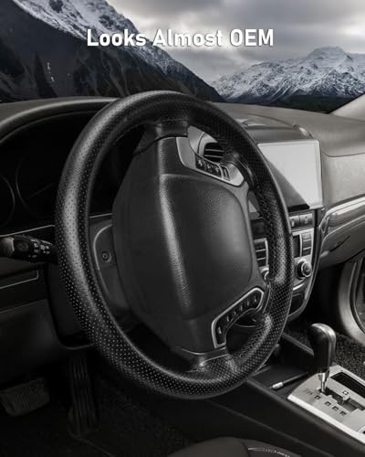 Universal Leather Car Steering Wheel Cover, Stitch On Wrap Size M4 Black
