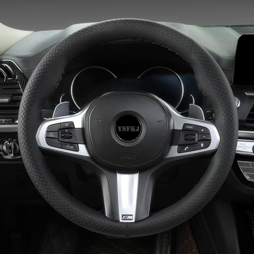 Black Leather Steering Wheel Cover, Stitch On Wrap, Breathable Cowhide Type C