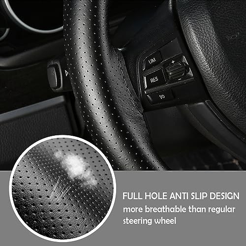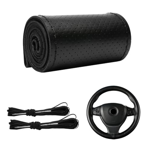 Car Stitch Steering Wheel Cover,Leather Steering Wheel Wrap with Needle Black