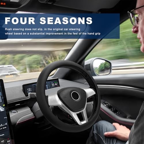 • Car Steering Wheel Cover, Premium Leather Steering Wheel Sleeve with Anti Round