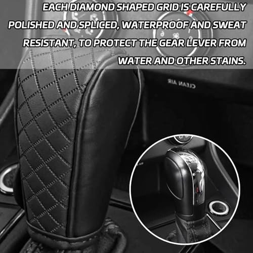Leather Car Gear Shift Knob Cover, Exquisite Embroidery Design, Burgundy
