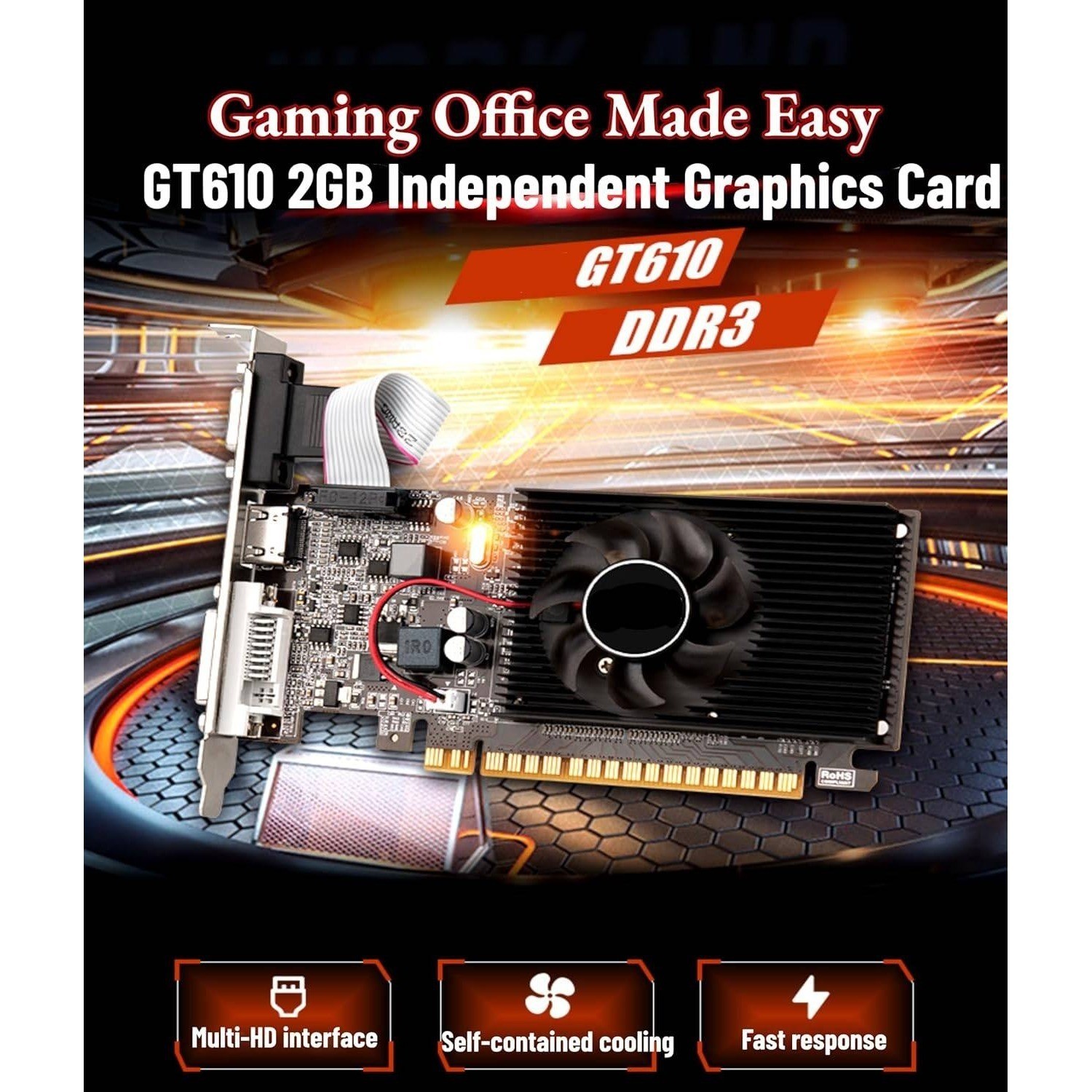 SZMZ GT610 Computer Graphics Card, 2GB DDR3 64bit PCI Express X16 Gaming
