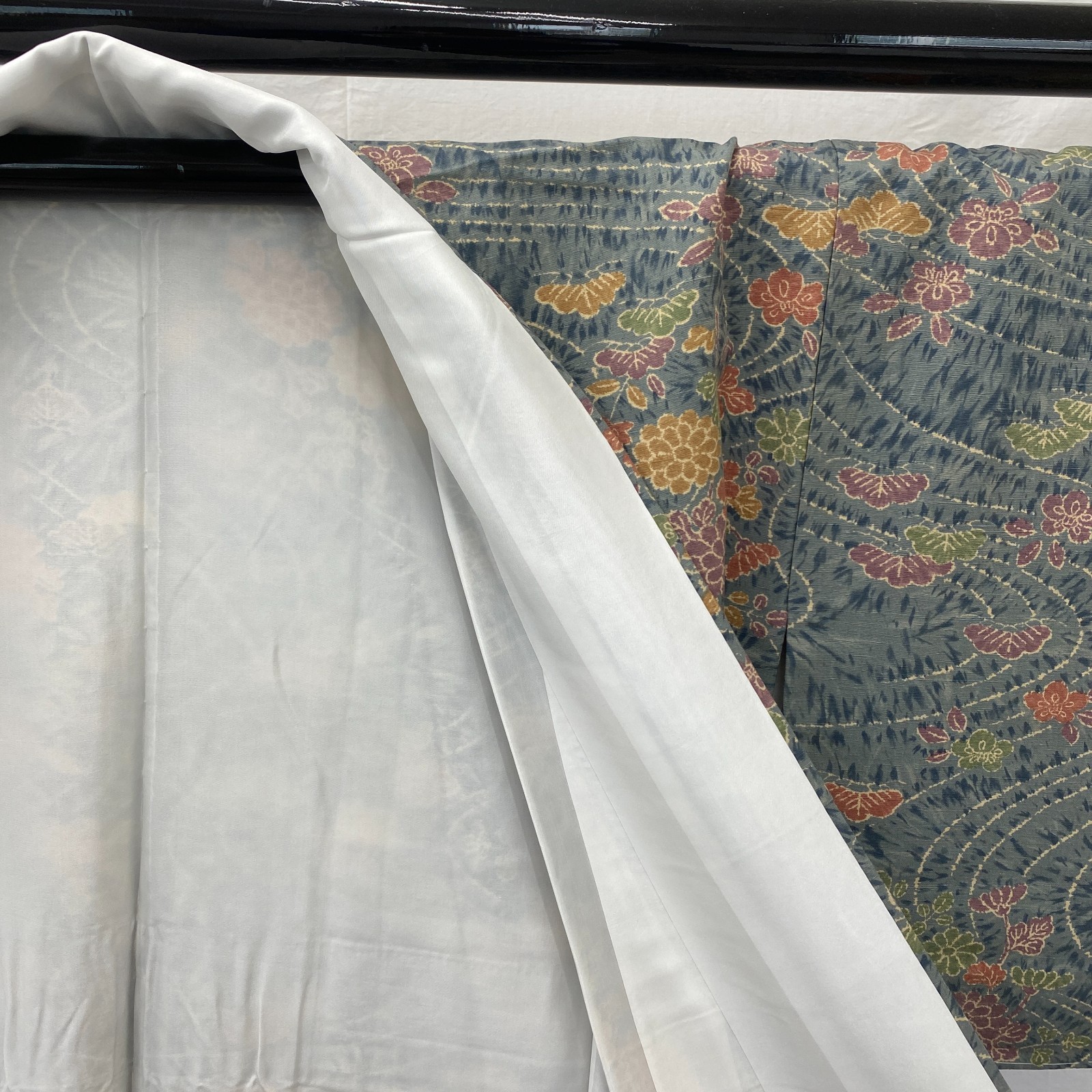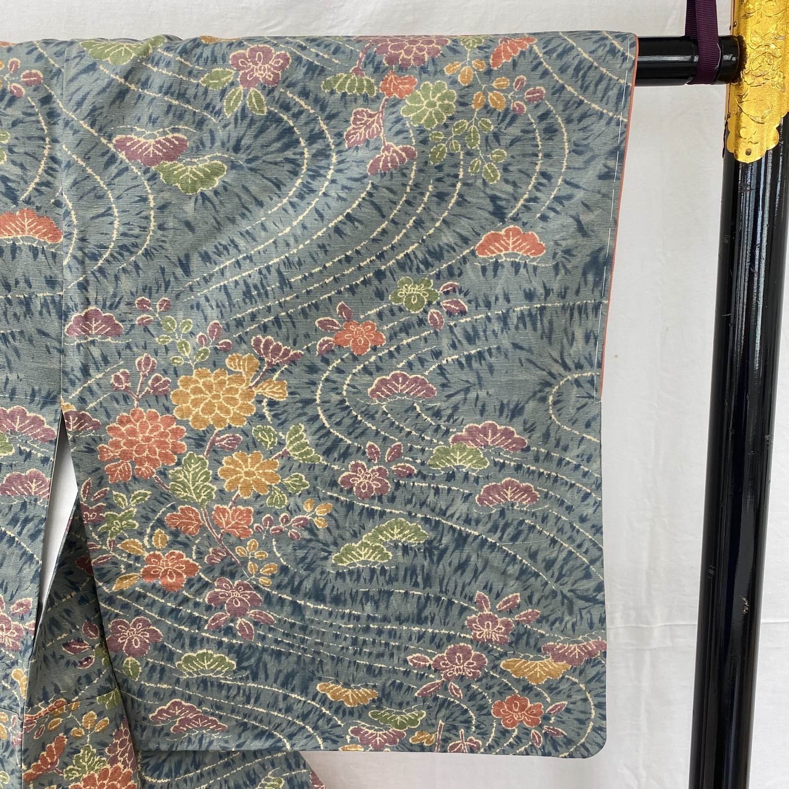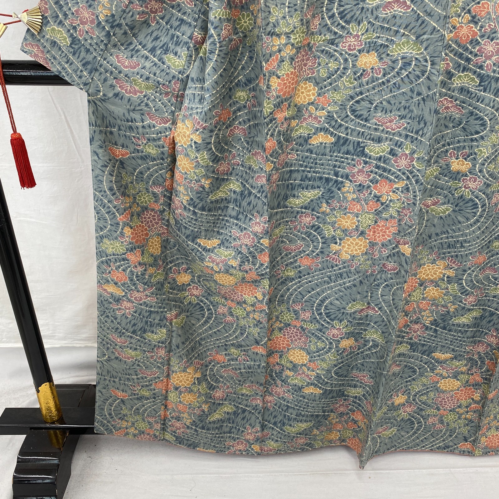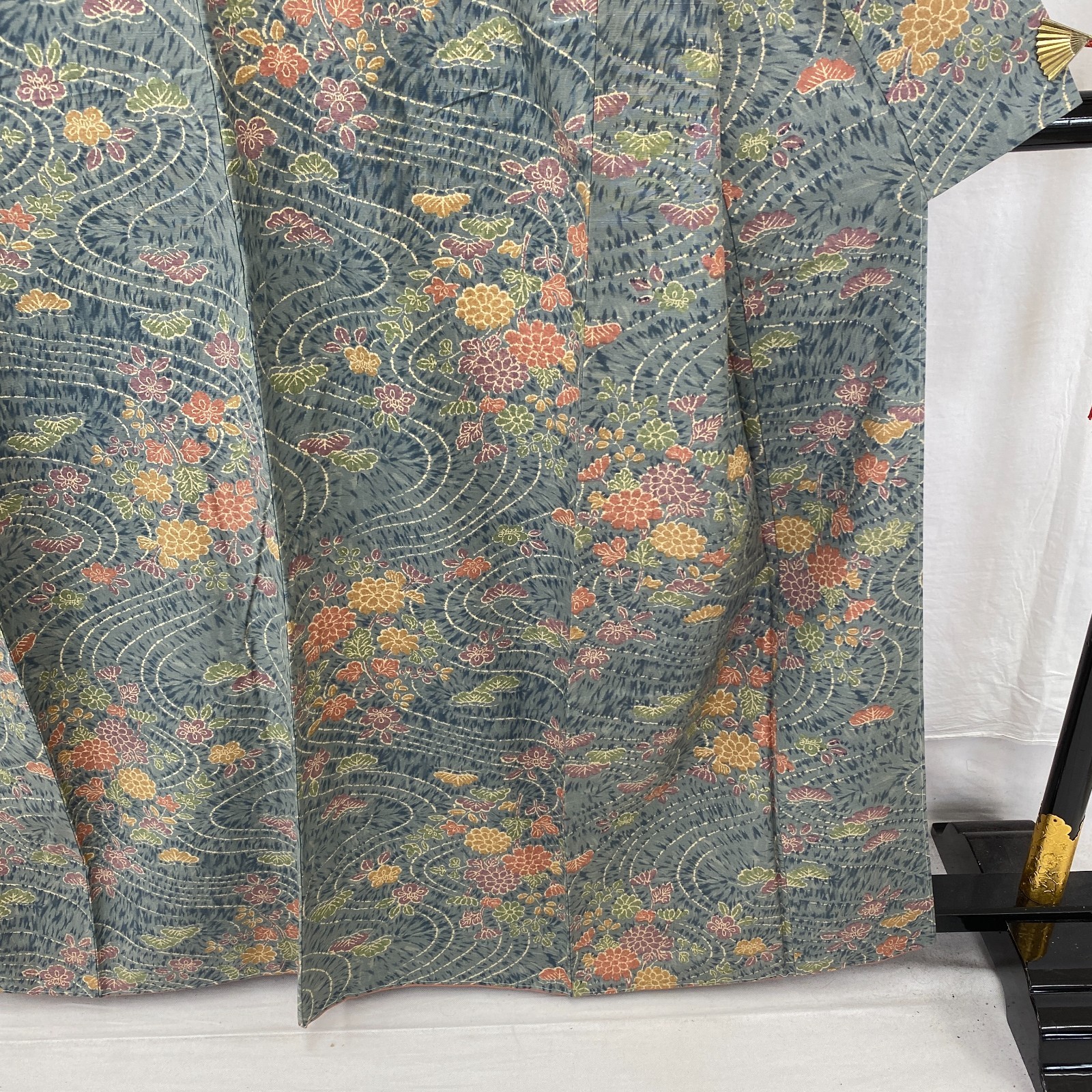 как выглядит Japanese Vintage Kimono Silk Blue Komon Traditional Authentic Length 62 in фото