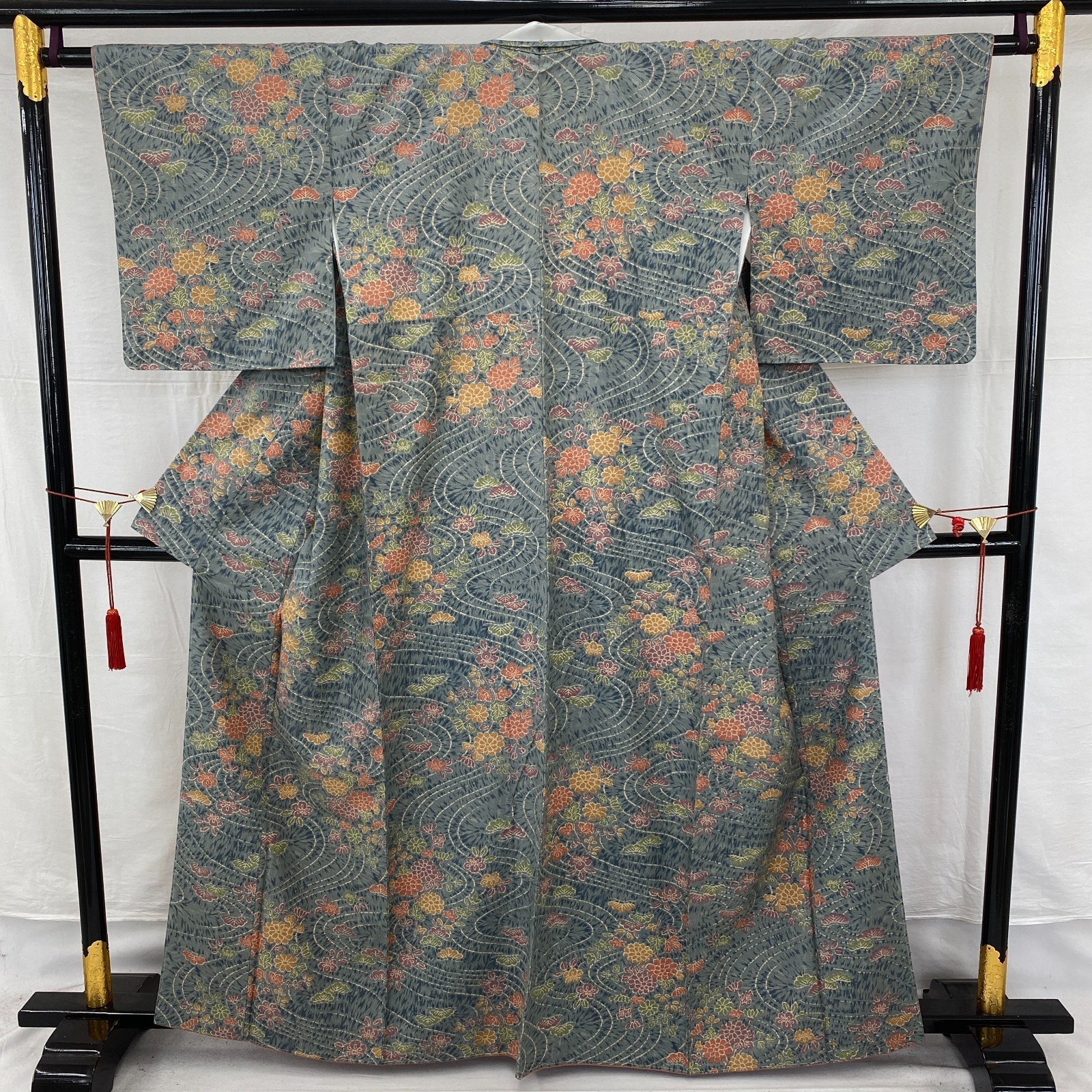 Japanese Vintage Kimono Silk Blue Komon Traditional Authentic Length 62 in