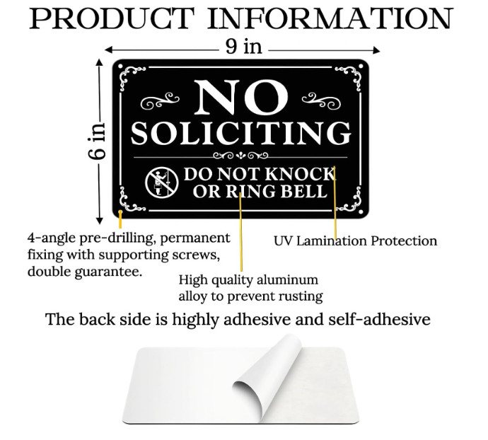 как выглядит 2 Pack No Soliciting Sign for House 9x6 Aluminum Metal Self-Adhesive Weatherproo фото