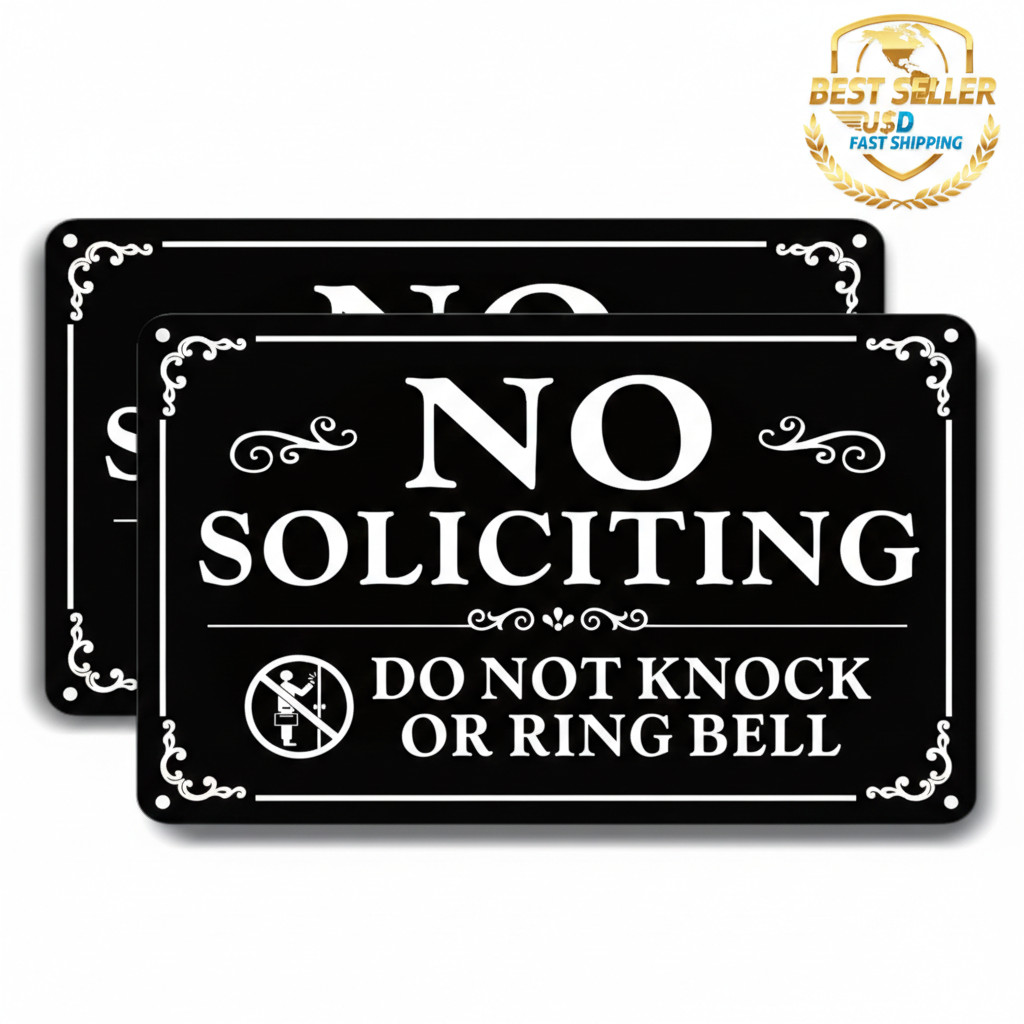 2 Pack No Soliciting Sign for House 9x6 Aluminum Metal Self-Adhesive Weatherproo