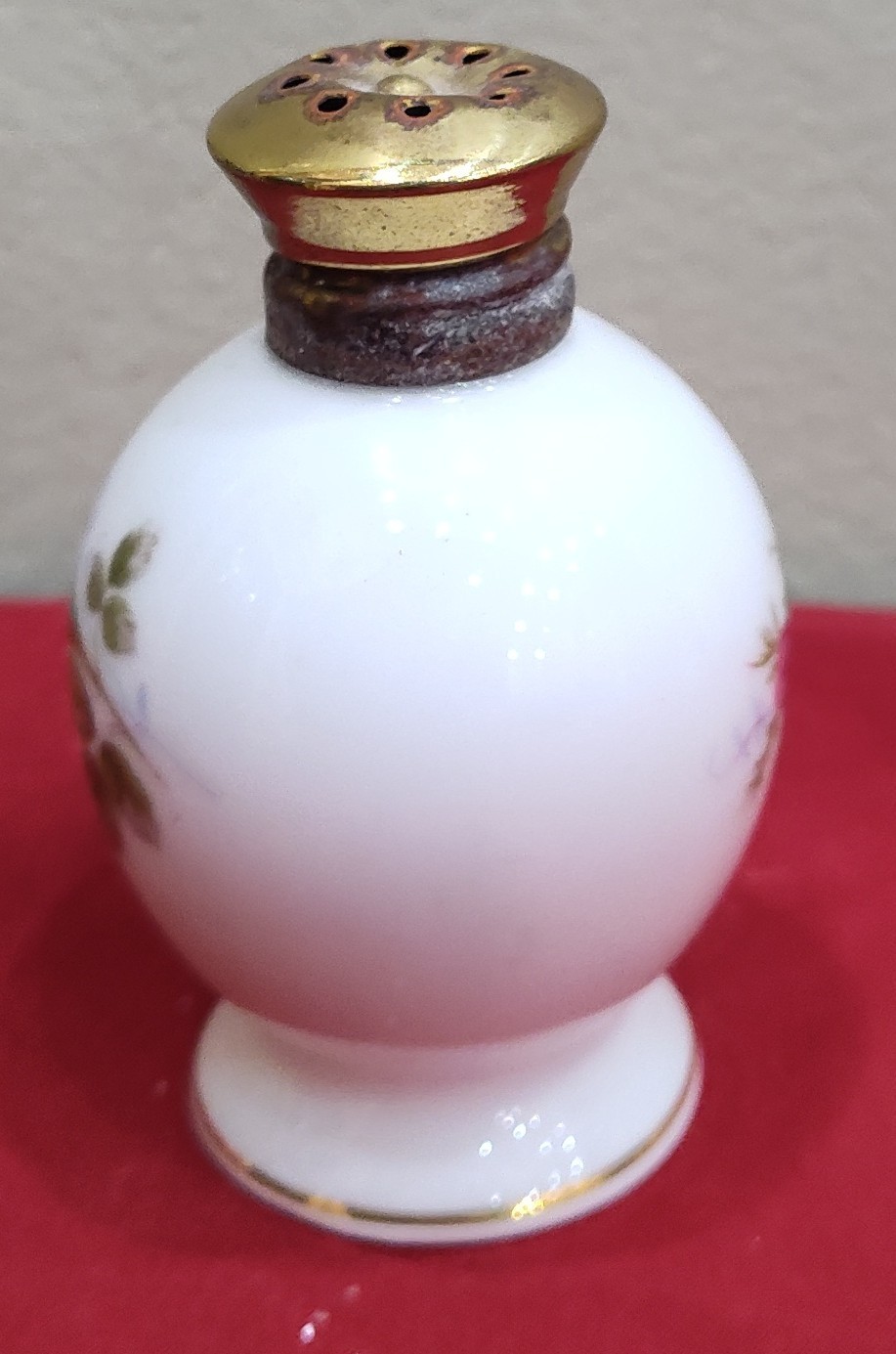 • Vintage Salt Shaker White Porcelain Stopper Gold Trim Top