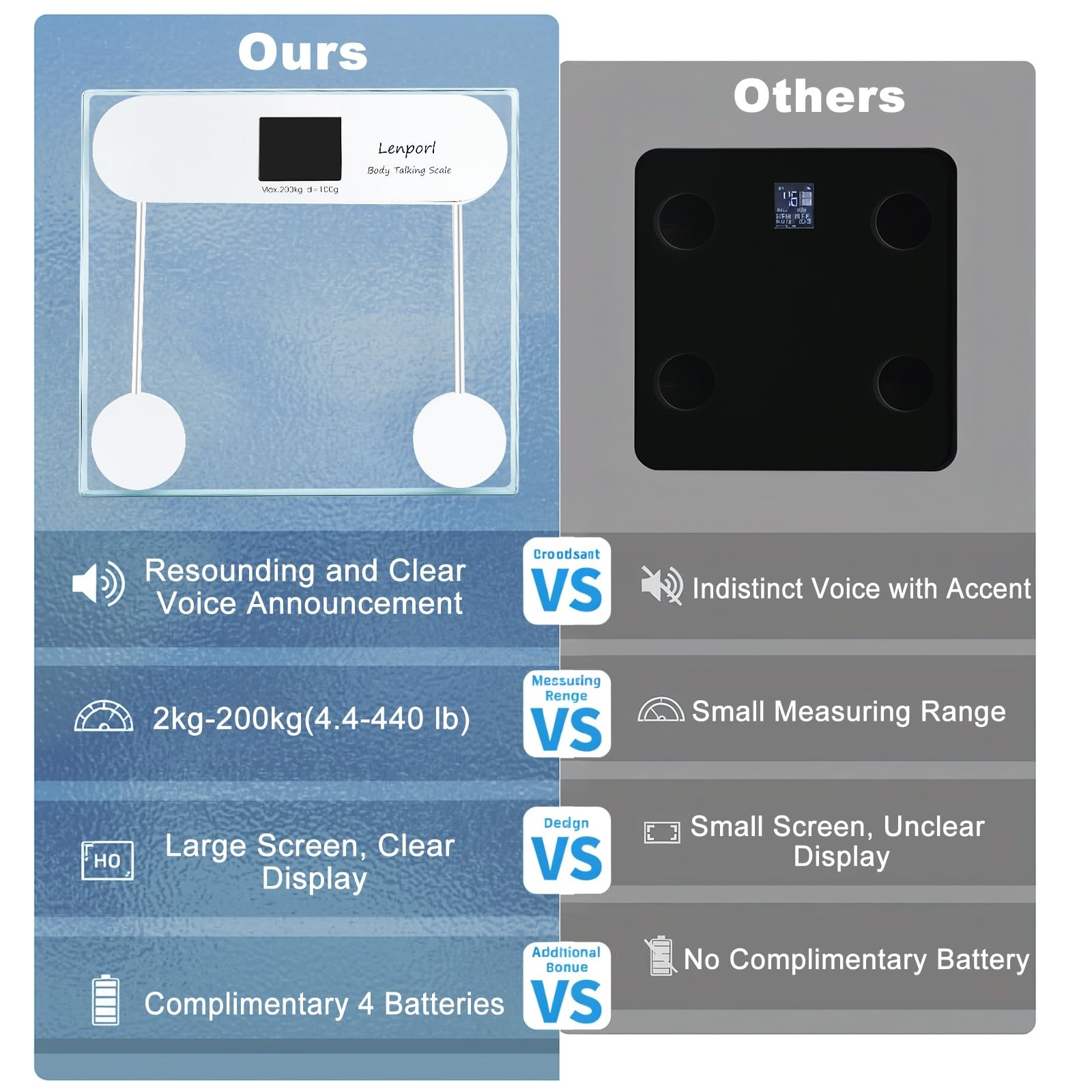 Talking Bathroom Scale 440 lb US Male Voice for Visually Impaired Seniors