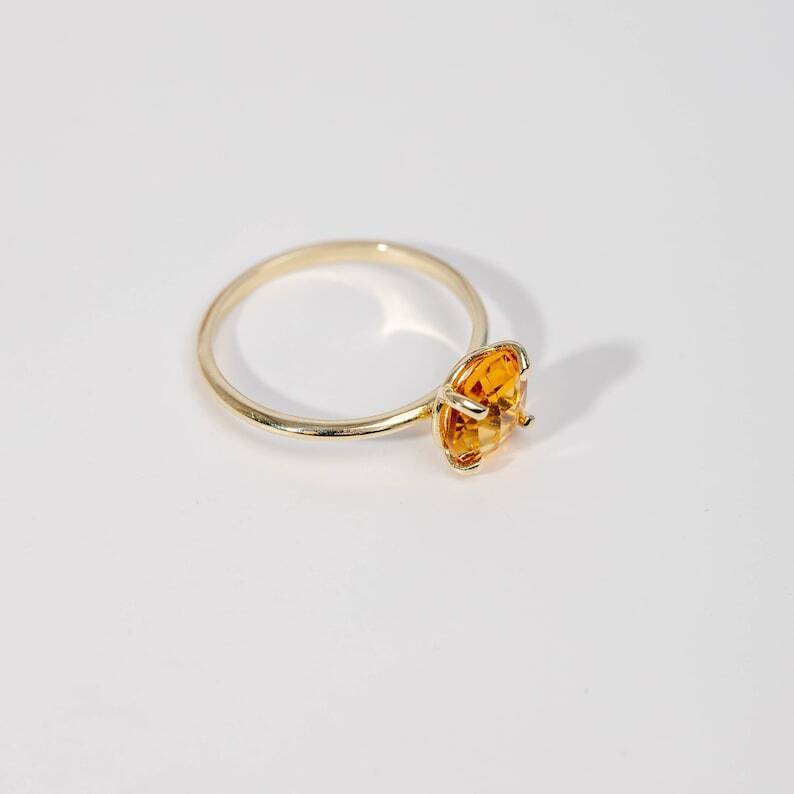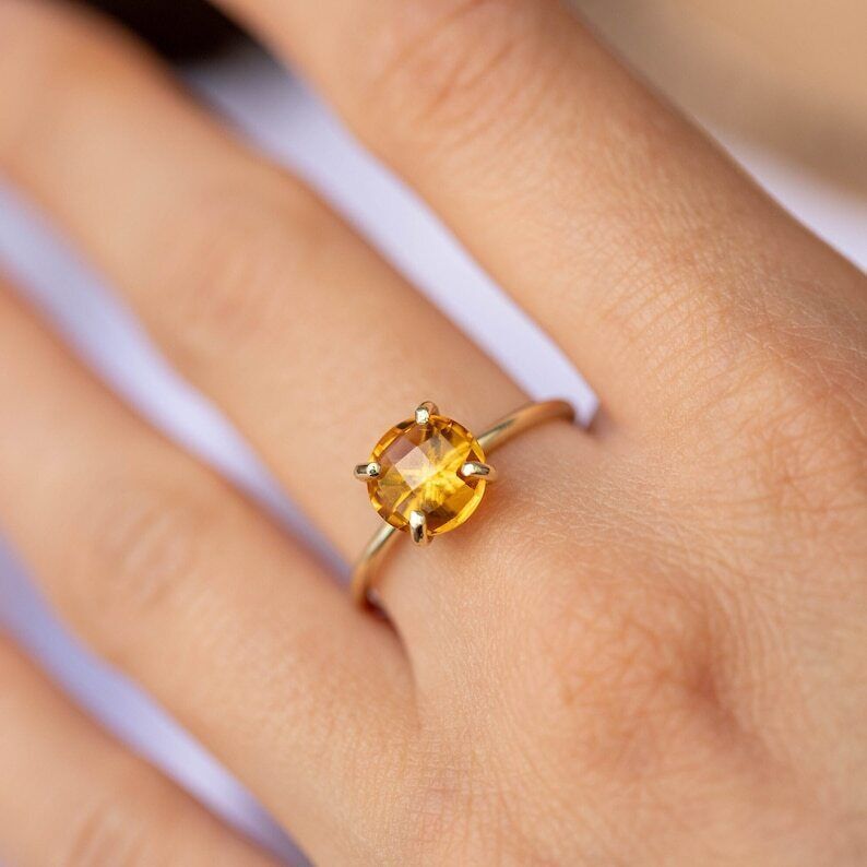 как выглядит Natural Citrine Gemstone Solitaire Women Ring Gold Plated Silver Ring фото