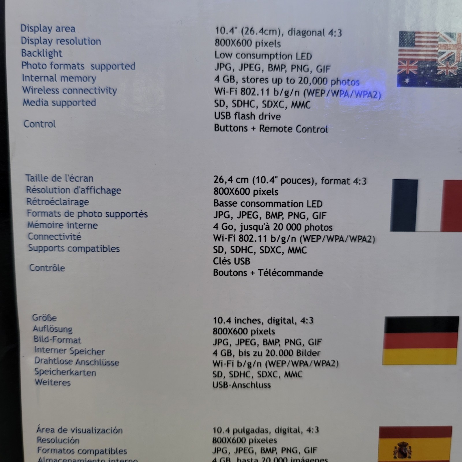как выглядит NEW PixStar FotoConnect Digital Photo Frame XD WiFi 10" 800x600 4 GB Open Box фото