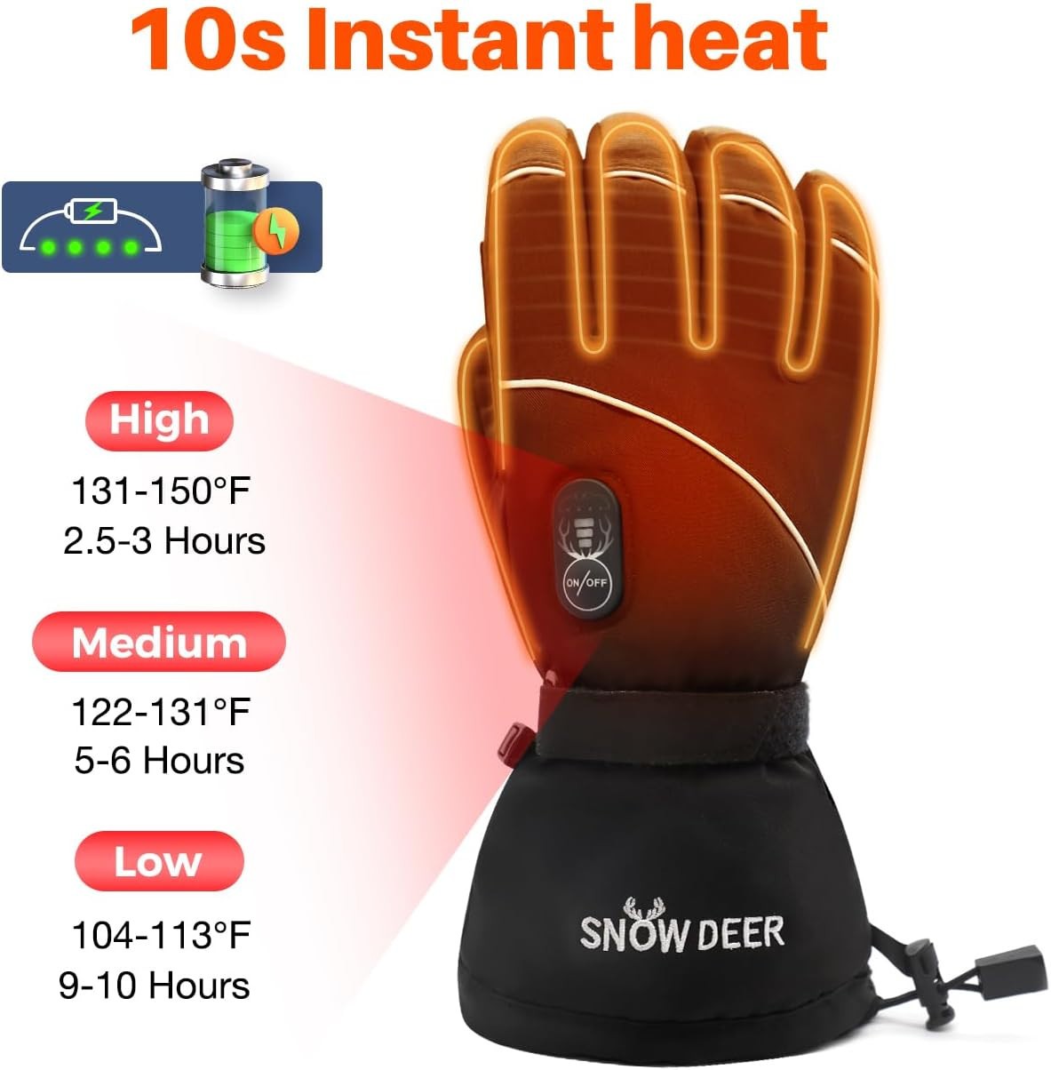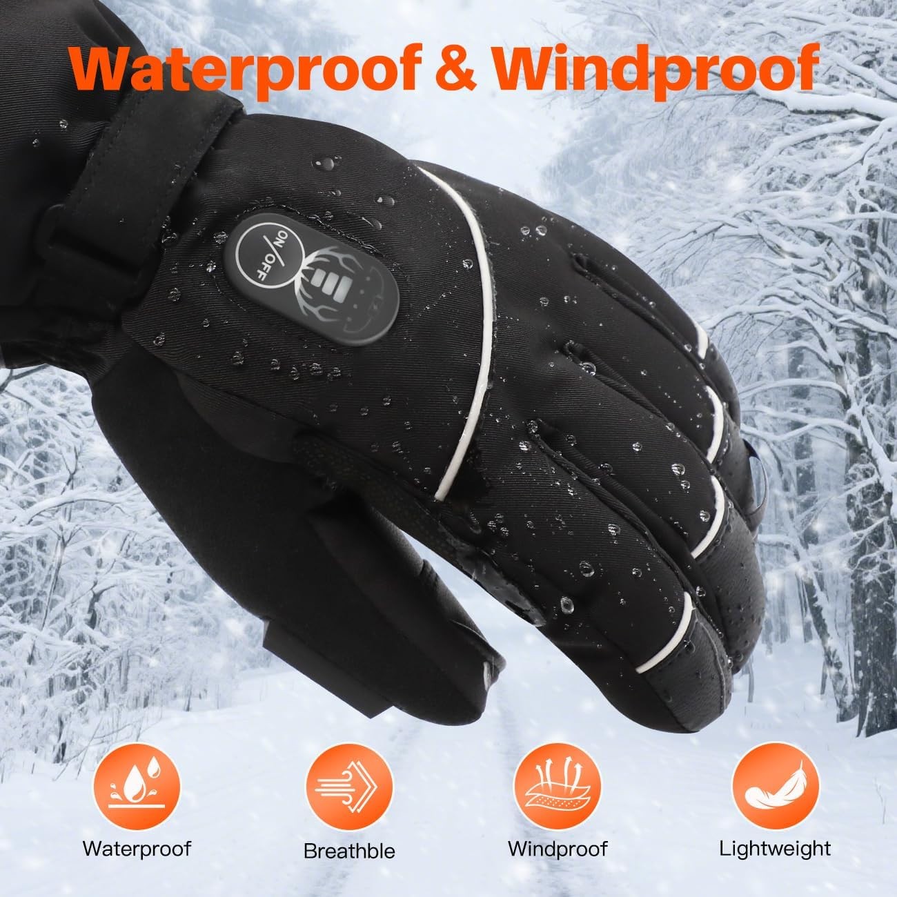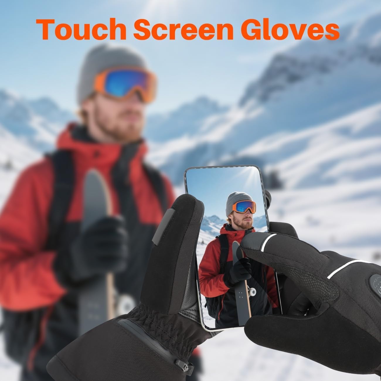 Heated Ski Hand Warm Windproof Touchscreen Gloves Electric Rechargeable Battery