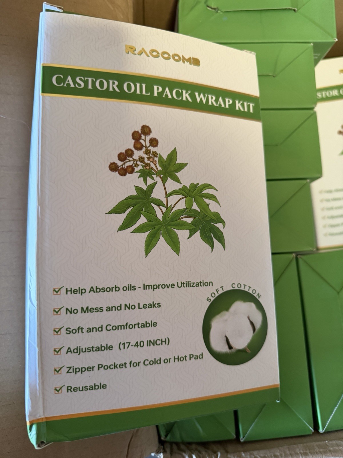 как выглядит Castor Oil Pack Wrap Organic Cotton, 4pcs Adjustable Reusable Castor Oil Patches фото