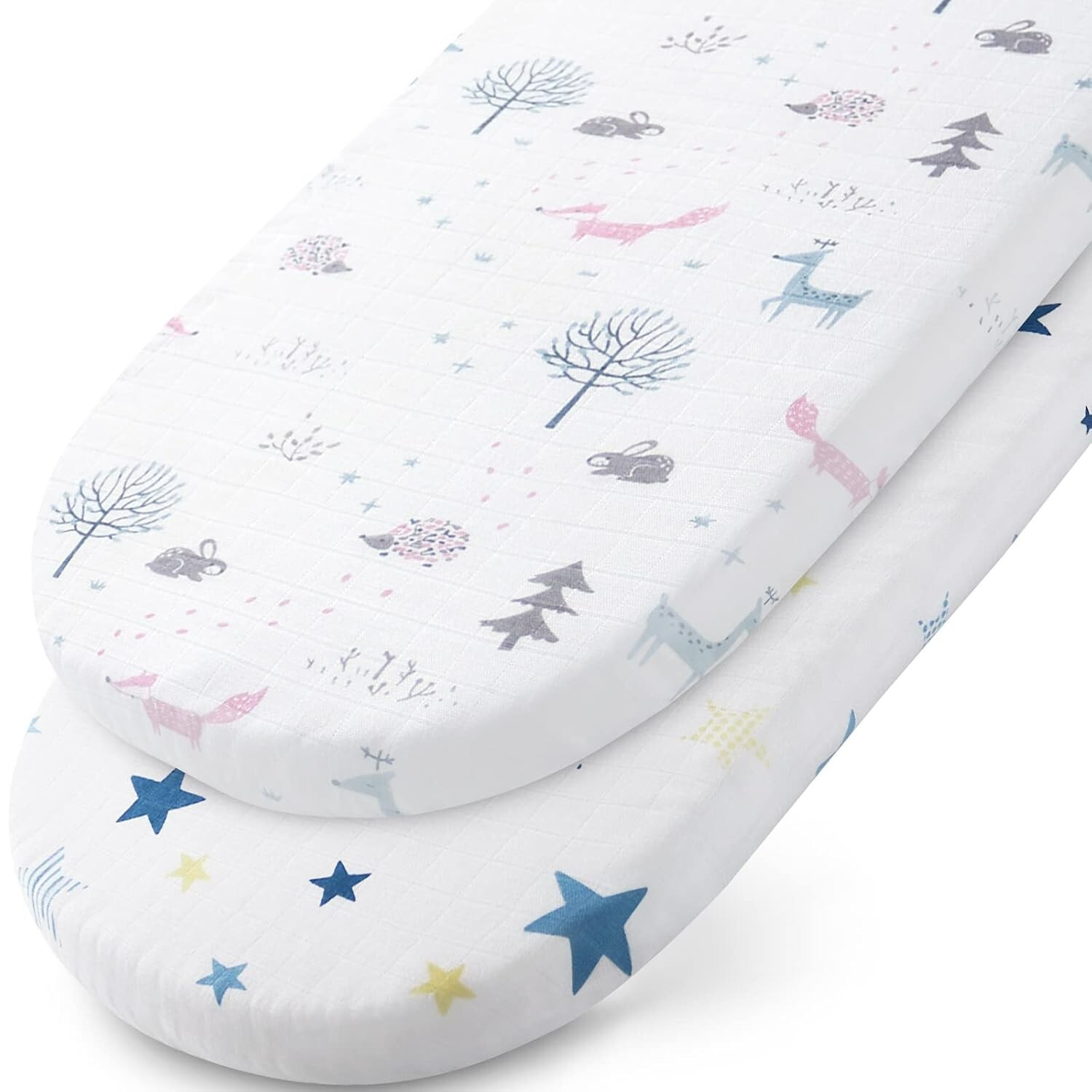 Muslin Bassinet Sheets Boy/Girl 30x16 Fit for Halo/Dream on Me Bassinet 2 Pack